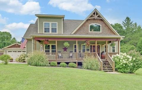This home features wrap around porches giving you the outdoor living space everyone dreams of overlooking this serene setting & the beautiful mountains in the distance.