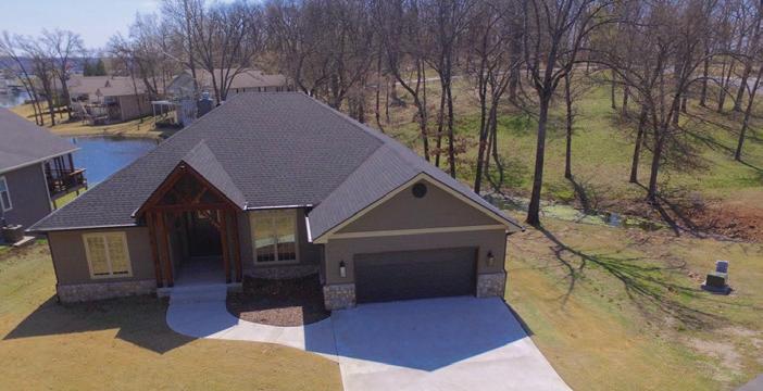 PRICE REDUCED on this beautiful new 2002 sf home located inside a gated community and minutes from Battlefield and Shangri-La golf courses and Grand Lake access. 4BR/2BA home with quartz countertops throughout and separate office. Sits on a corner lot and has a covered deck. Boat slips available to lease at the marina. Short term rentals are allowed.
