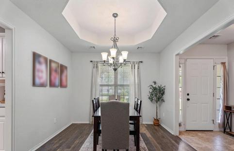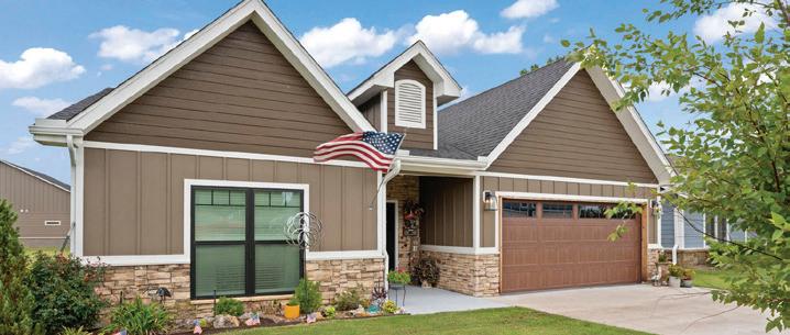 CHEERFUL 3BR, 4BA HOME. Situated on a corner lot in the Coves! Two 2-car garages. Partially fenced. Covered deck overlooking the greenbelt with a hot tub included and firepit to enjoy. $695,000 Diana Riley Patterson 918-629-3717
