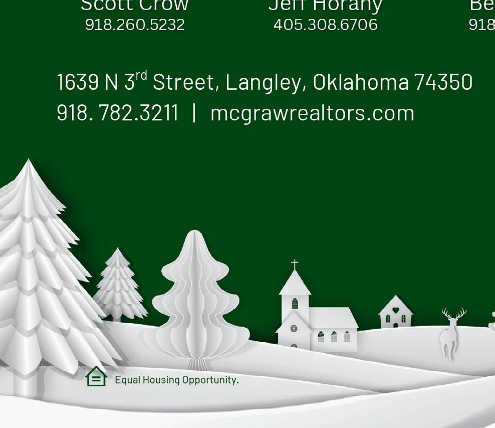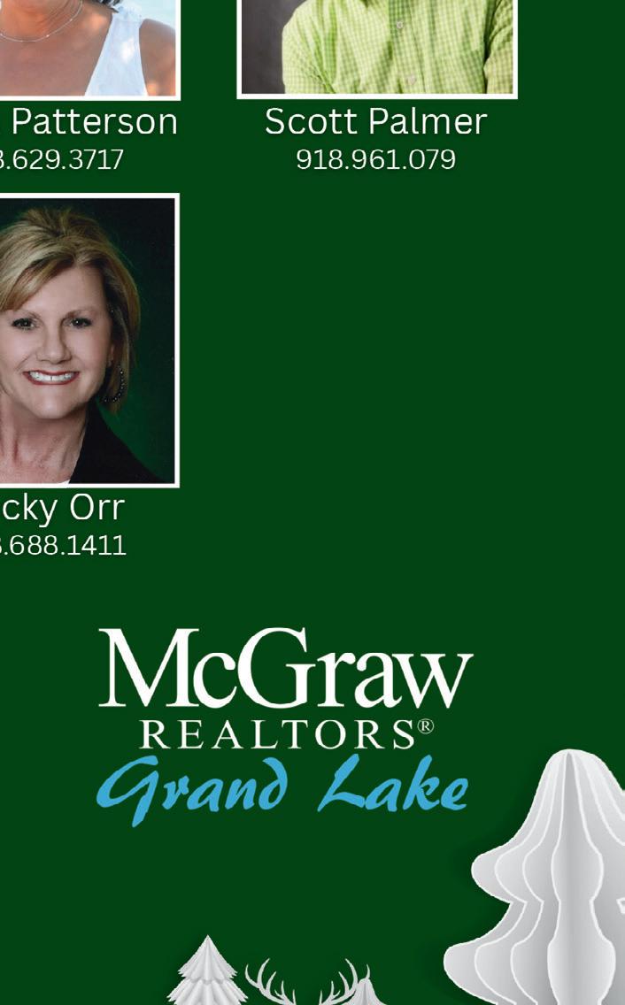 KRISTY WILSON 918-848-0317 122’ OF WATERFRONT, IN A LAKE COMMUNITY! This cabin is located at the end of the street on over half acre. Lake access with a park like area for some family time. Two bedrooms and one bath. $185,000 25-970 KATHY NASH 918-801-8575
