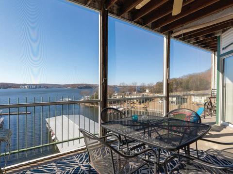 TURNKEY!! Enjoy breathtaking main channel views from this exceptional end-unit condo! This spacious 3-bedroom, 2-bathroom unit, located at the 1MM, offers easy access to local restaurants, shops, and the iconic Bagnell Dam Strip. Harbour Towne amenities include 2 heated pools, boat trailer parking, clubhouse, fitness room, library, tennis court, walking trail, and playground. The 12x28 boat slip with Galvalift ShoreMaster 6,000lb lift included. MLS 3577091 $387,500