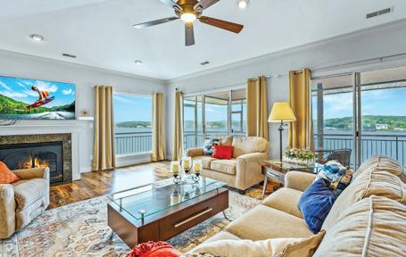 Luxurious Lakeview Villa w/ Lake Access & Boat Slip; The Enclaves at Grandview. 4-BR, 3-BA villa nearly 3,000 sq.ft. Located @ MM 3 in Lake Ozark, MO, with lake views & maintenance-free living in the Enclaves at Grandview. This open-concept, main-level living home showcases high-end finishes throughout, granite countertops, slate stone fireplace. 12x32 boat slip w/ a 8000 lb. hoist is included. $636,400
