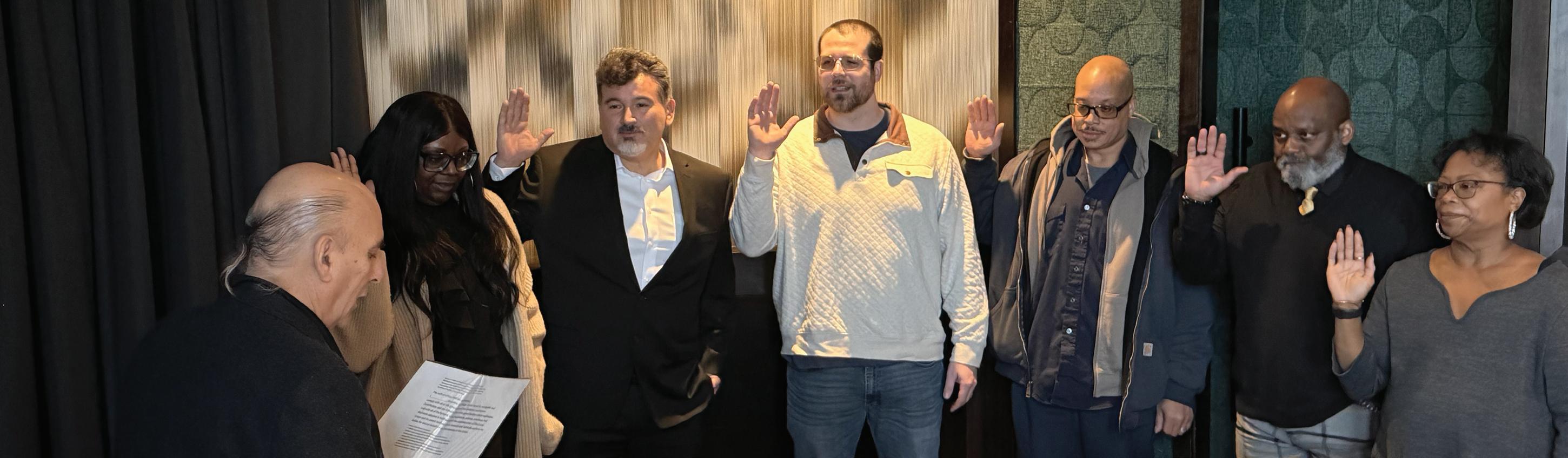 National President Paul Hogrogian administered the Oath of Officers to the newly elected Officers of Local 301. Also in attendance were National Secretary-Treasurer Kevin Tabarus, National President Emeritus John Hegarty, and Assistant to the National Officers Neil Ryan.