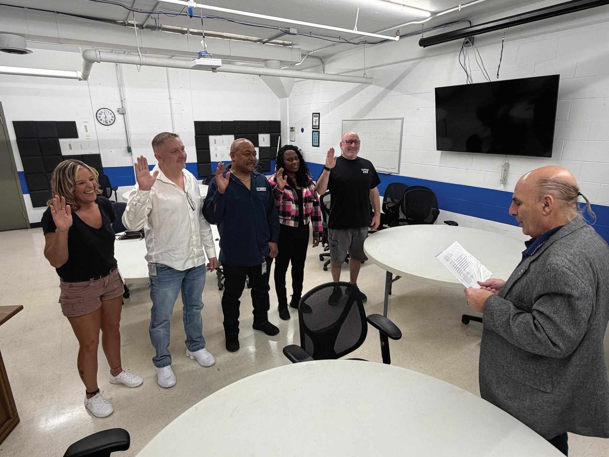 National President Paul Hogrogian swore in the new officers at Local 298. Both National Secretary-Treasurer Kevin Tabarus and Vice President Central Region June Harris were also on hand for the event.