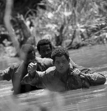 As Peter flees the camerawork (B&W with hints of sepia by cinem a t o g r a p h e r R o b e r t R i c h a r d s o n , K i l l B i l l : Vol 1) favors shots of slave hunters on horseb a c k a n d m e n a c i n g h o u n d s t r a c k i n g P e t e r and the other escapees These chase scenes feel t o o c o w b o y - i s h l i k e F u q u a ’s T h e M a g n i f icent Seven One of the c h e e s i e s t s e q u e n c e s comes when Peter wrestles an alligator underwater He finally steps out of the quagmire, you t h i n k h e ’s t h e v i c t o r, t h e n t h e g a t o r a t t a c k s one more time like a monster in a tacky horror film