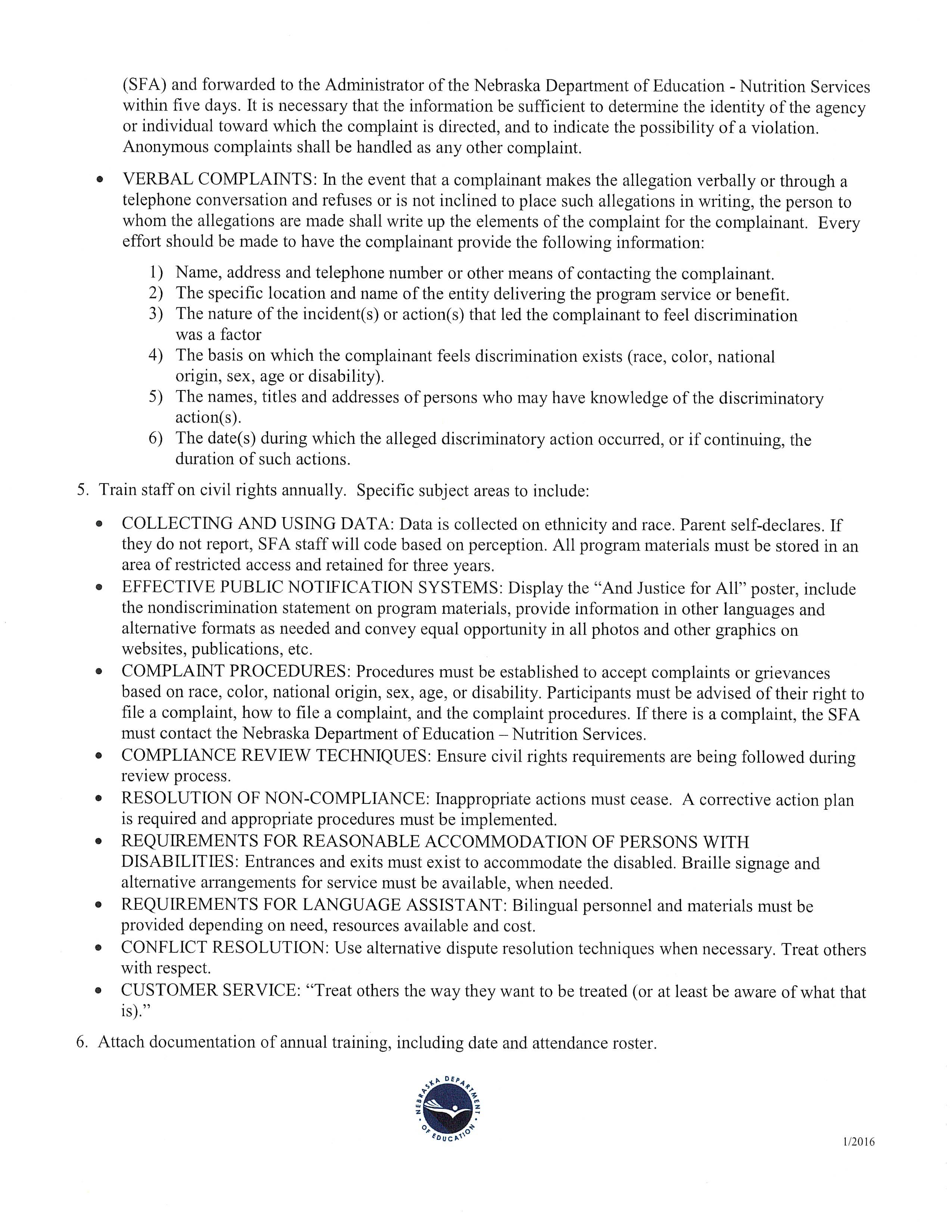 PLEASE NOTE: As stated above, all protected bases do not apply to all programs. The first six protected bases of race, color, national origin, age, disability and sex are the six protected bases for applicants and recipients of the Child Nutrition Programs.
