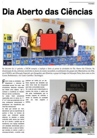 No decorrer do 2.º período, a ESCM cumpriu a tradição e abriu as portas às atividades do Dia Aberto das Ciências. Na dinamização do dia, estiveram envolvidos os alunos do ensino secundário, os professores dos grupos 500 (Matemática), 510 (FQ), 520 (CN/B/G), 910 (Educação Especial), 420 (Geografia), 400 (História), o grupo de Estágio de Educação Física, bem como os dos Cursos Profissionais e do Curso Científico Tecnológico.