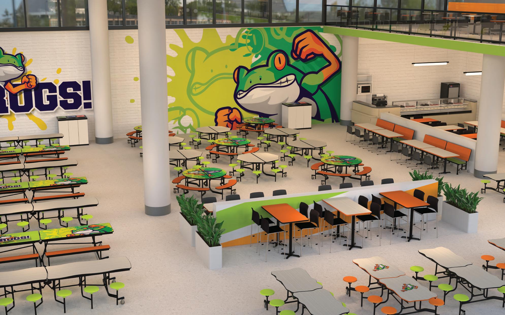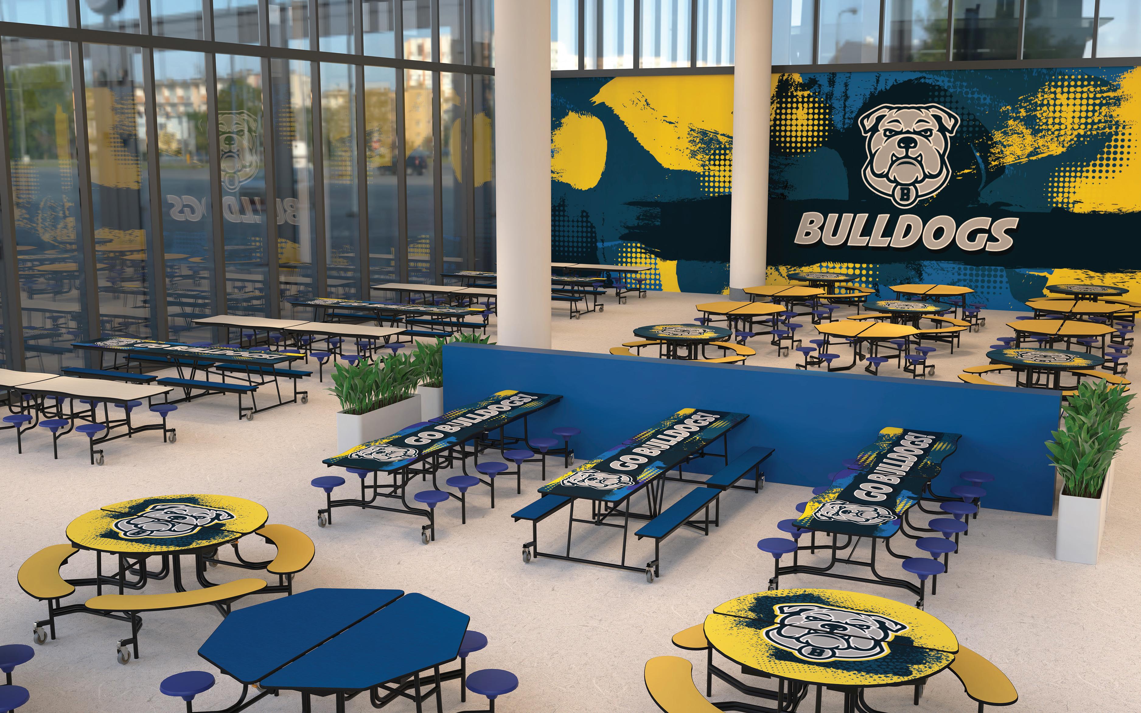 Make your cafeteria the heart of school life with personalized, school-branded furniture designed for comfort and style!