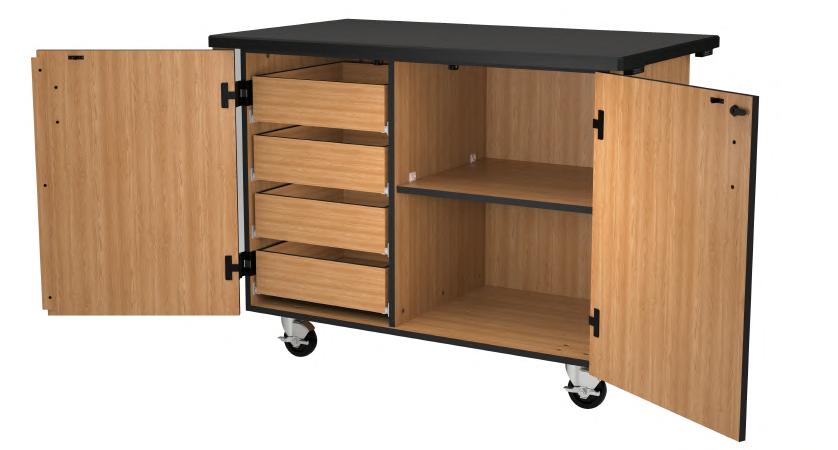 NPS® Mobile Science Cabinet- w/ Inner Drawers & Shelf, Chem-Res Top, 28"W x 48"L x 36"H