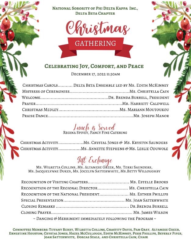 This year Soror Chastity helped plan the Annual Christmas Gathering Committee by designing programs, decorating and preparing a budget. She was also the DJ for the event! This year’s event was open to