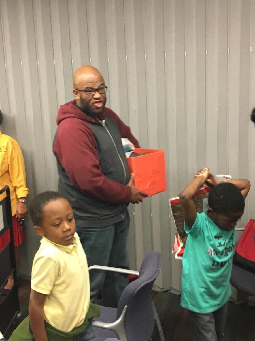 Anthropo Danny Davis helps prepare Thanksgiving boxes for delivery.