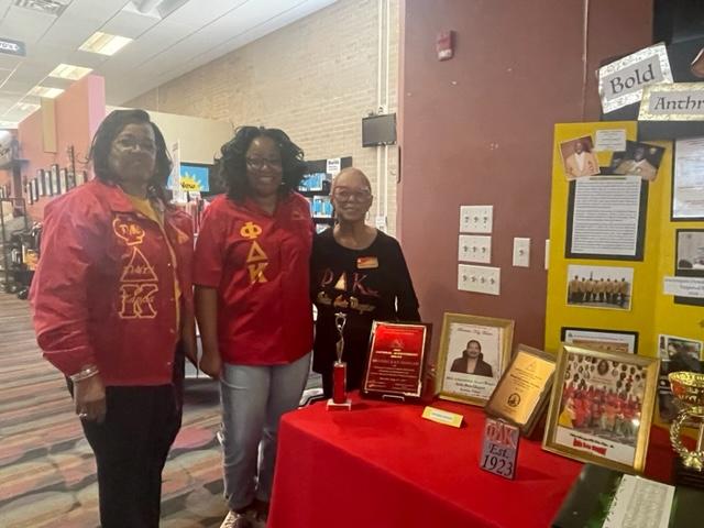 Sorors Jones and Colbert-Davis pose with Pixie Phillips, the editor to the Krinon, at a museum pop-up.