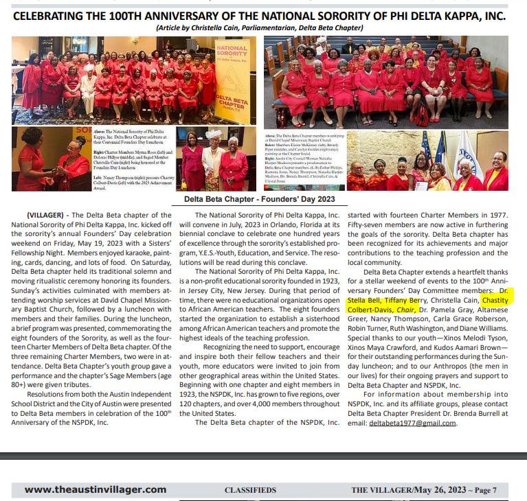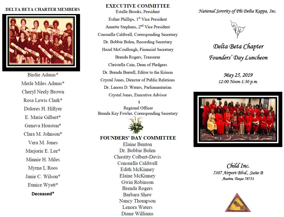 Soror Chastity Colbert Davis was the chair of this year’s Founders Day. It included many events highlighted in the news article. There were lots of surprises including a slideshow and Delta Beta Paddle with an orginal Founder’s Signature.