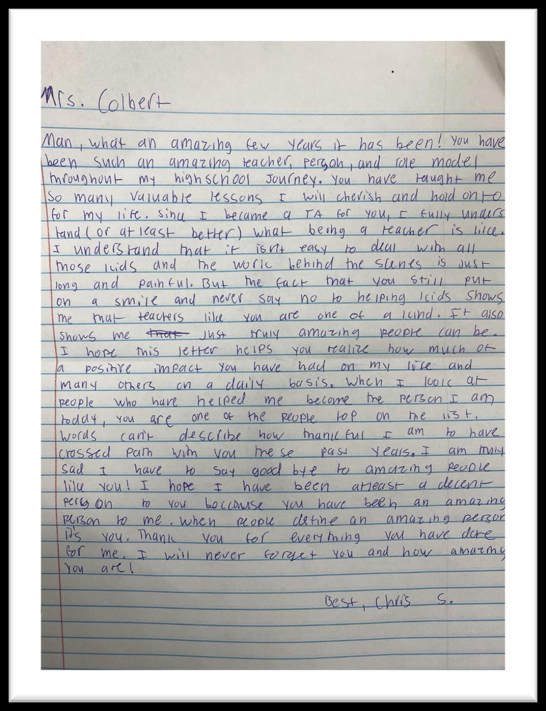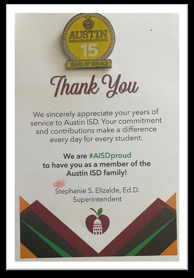 Over her 16 years at McCallum High, Soror Colbert-Davis has had various leadership roles. She served as the school's cheerleading coach for seven years and has mentored the program's new coaches since she stepped down from that role. As one of the most-tenured math teachers on campus, she is a leader within her own department. She has also served as a class sponsor at the school and helped put on the 2022 prom.