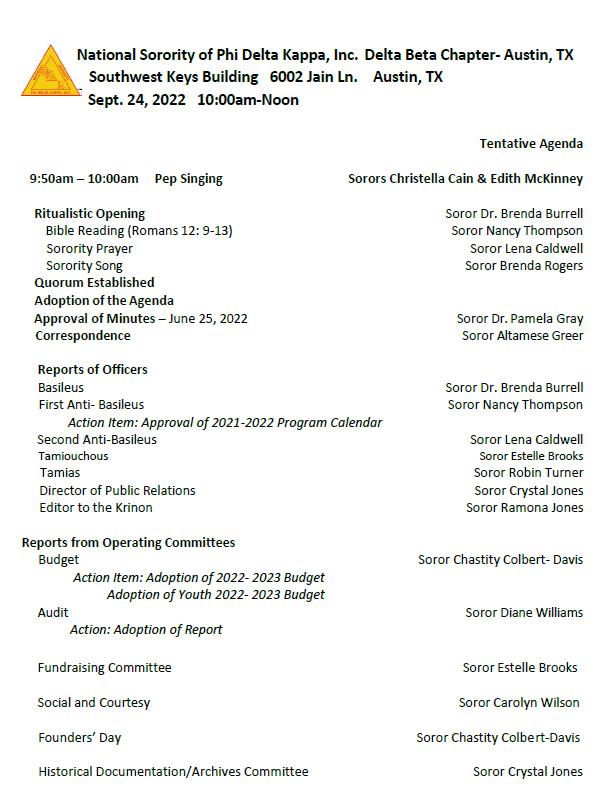 Remarks/Closing…………………………………………………... Basileus Estelle Brooks
