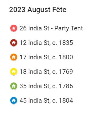 Party tent is located at 26 India Street Houses open from 6:00 p.m. – 8:00 p.m.
