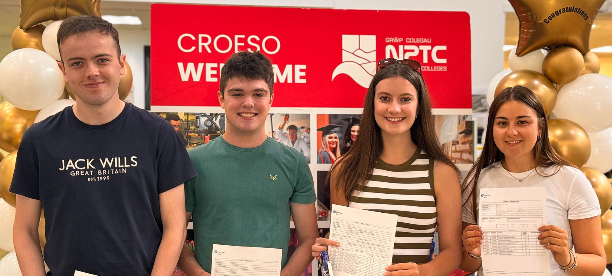 Mae Grŵp Colegau NPTC yn rhagori'n gyson mewn canlyniadau Safon Uwch a galwedigaethol, gyda llawer o'n myfyrwyr yn mynd i brifysgolion Brics Coch gan gynnwys Rhydgrawnt, neu'n camu'n uniongyrchol i'w gyrfa ddelfrydol. Mae hynny oherwydd, er yr awyrgylch aeddfed a chyfeillgar, bod ein corff o fyfyrwyr dawnus yn cael eu gwthio i gynnal lefelau uchel o gyflawniad academaidd yn gyson, ond rydym hefyd yn rhoi llawer o ffocws ar sgiliau trosglwyddadwy a fydd yn eu helpu i gael cyflogaeth yn syth o'r Coleg neu i lwyddo mewn bywyd.