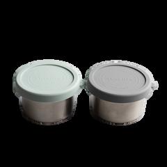 Perfectforyourfavoritesnacks CanbeusedinsideLunchBoxorseparately Madeof food-grade18/8stainlesssteelandplatiniumsilicone AYA&IDASnackContainersare laboratorycertifiedtomeetLFGB(foodcontactgradetesting).Comesinasetof2 SnackContainers.