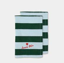 Expressive stripes are a recurring theme for Byon. The Love kitchen collection combines a classic pattern with a bold colour combination in cherry red and butter yellow or green and light blue. Thay are all embridered with a lovely message, a shoutout from us to add a little extra warmth and love to all kitchens. Pair it with the Love or Leya families for the ultimate Byon vibe. A perfect gift for someone who has everything. Adds flair to the kitchen. Delivered with a beautiful Byon ribbon. Design Byon Studio.
