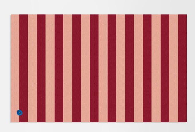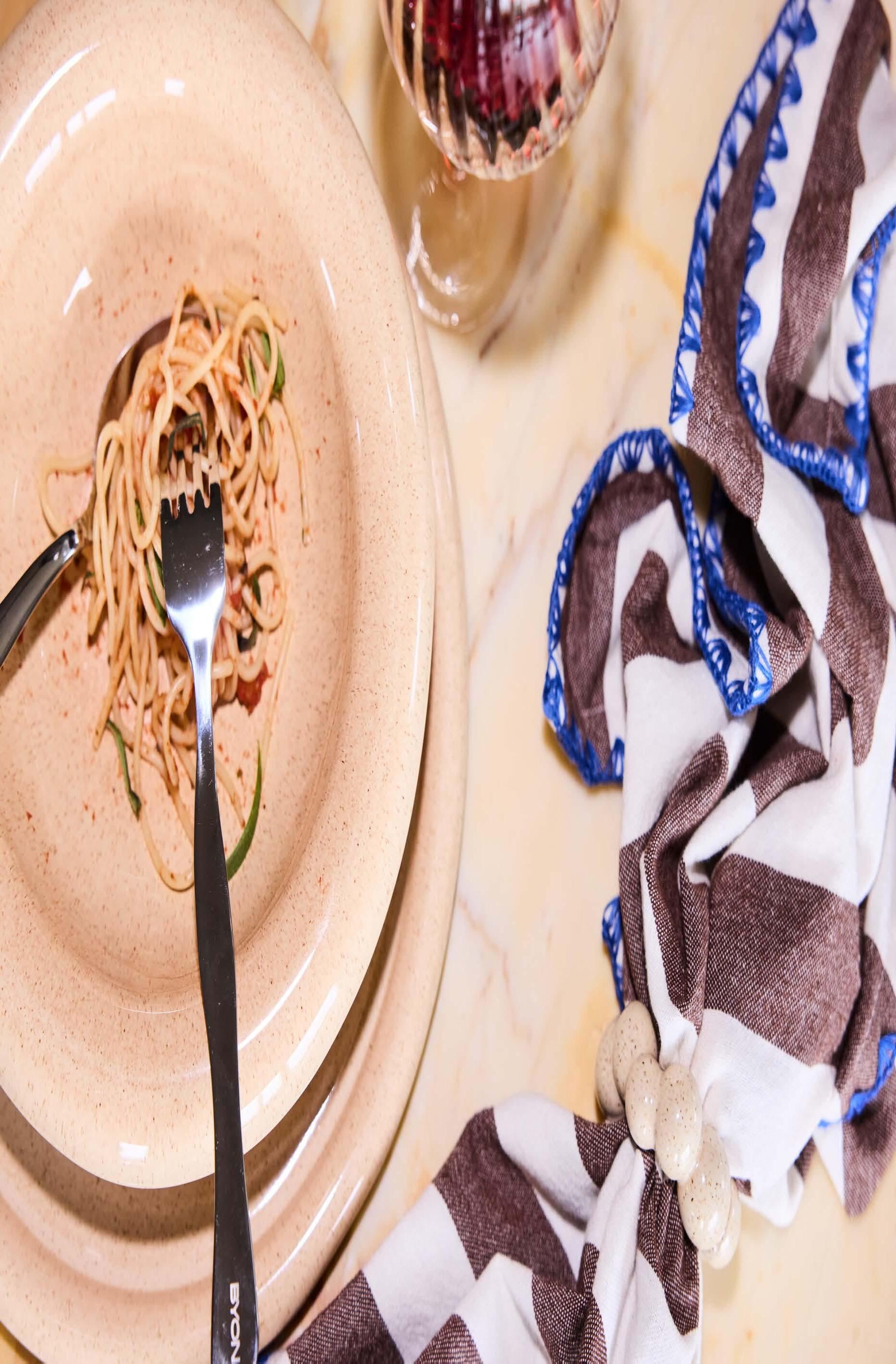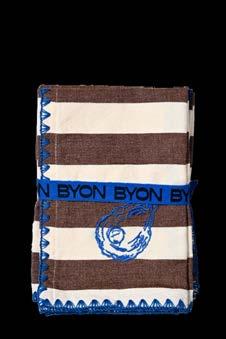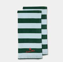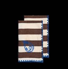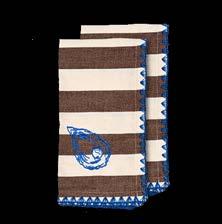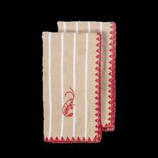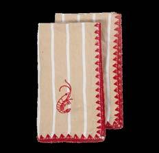 Bubba textiles brings to mind the charm of Southern Europe and long, inviting dinners. With classic beige and white stripes, a stitched edge with a red contrast, and an embroidered shrimp for a playful touch, this textile collection adds a charming element to any table. Pair the table cloth with napkins and tea towels for a cohesive and elegant setting. Comes with a ribbon and bow. Design Byon Studio.