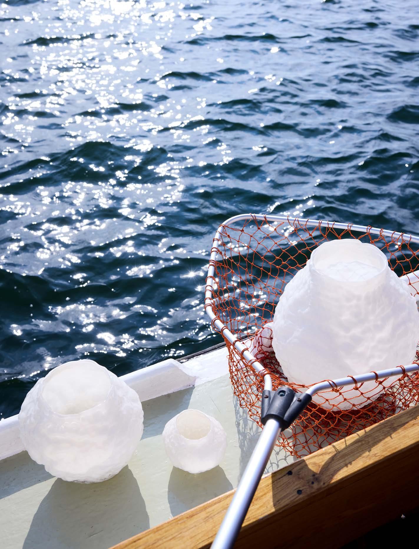 In Shelley Collection the shape of the shells has met the imagination and become something we hardly thought existed. The porcelain is glazed for the natural to meet the luxurious. Cup Shelley is a chunky shell cup in a unique shape which can be combined with a wavy plate straight from the sea. The collection also holds a magnificent jug for the favourite drink. The areas of use are infinite – let the cup become a bowl and the carafe a vase. As always at Byon there are no rules about how things should be used. What’s important is what you want! Design Byon Studio.
