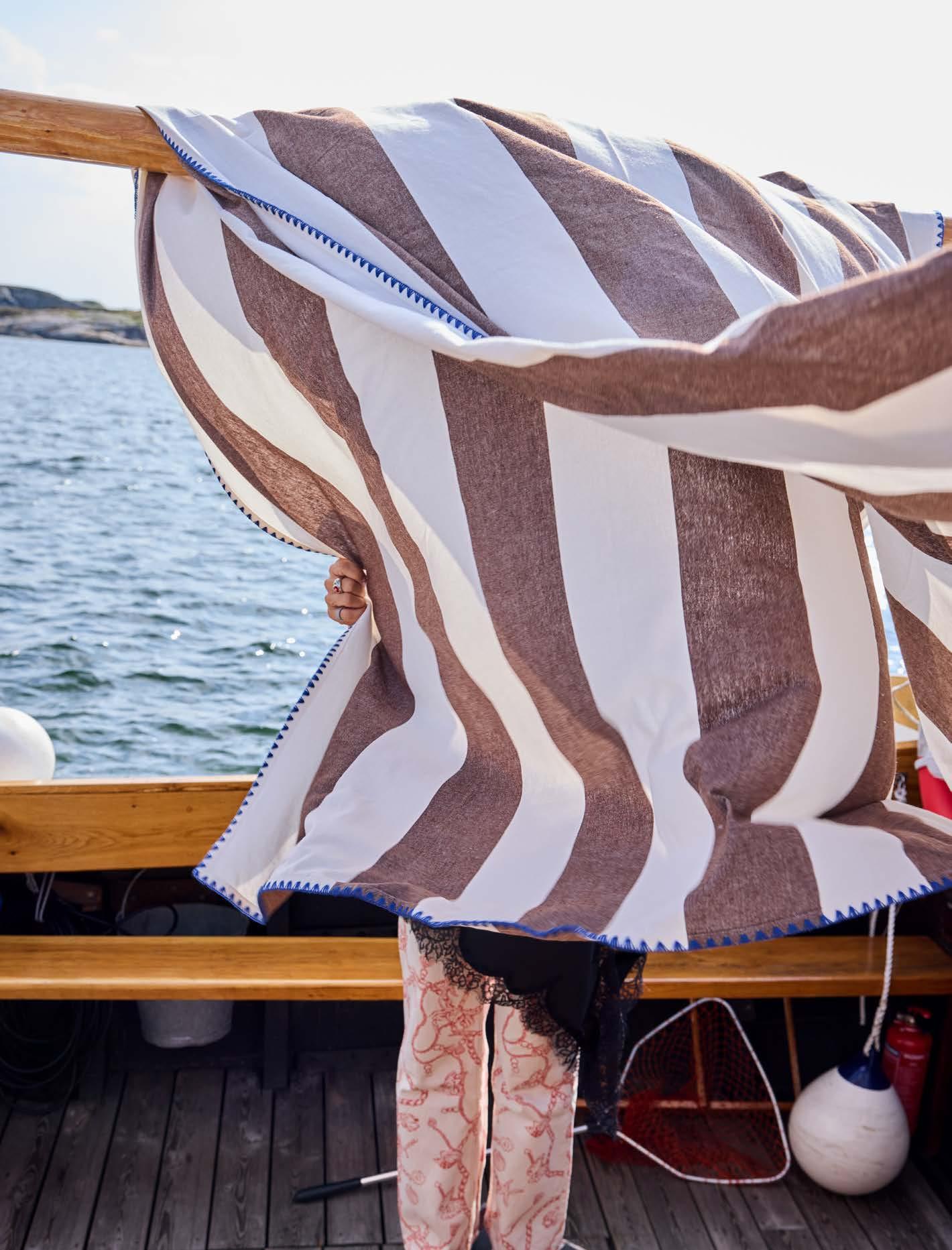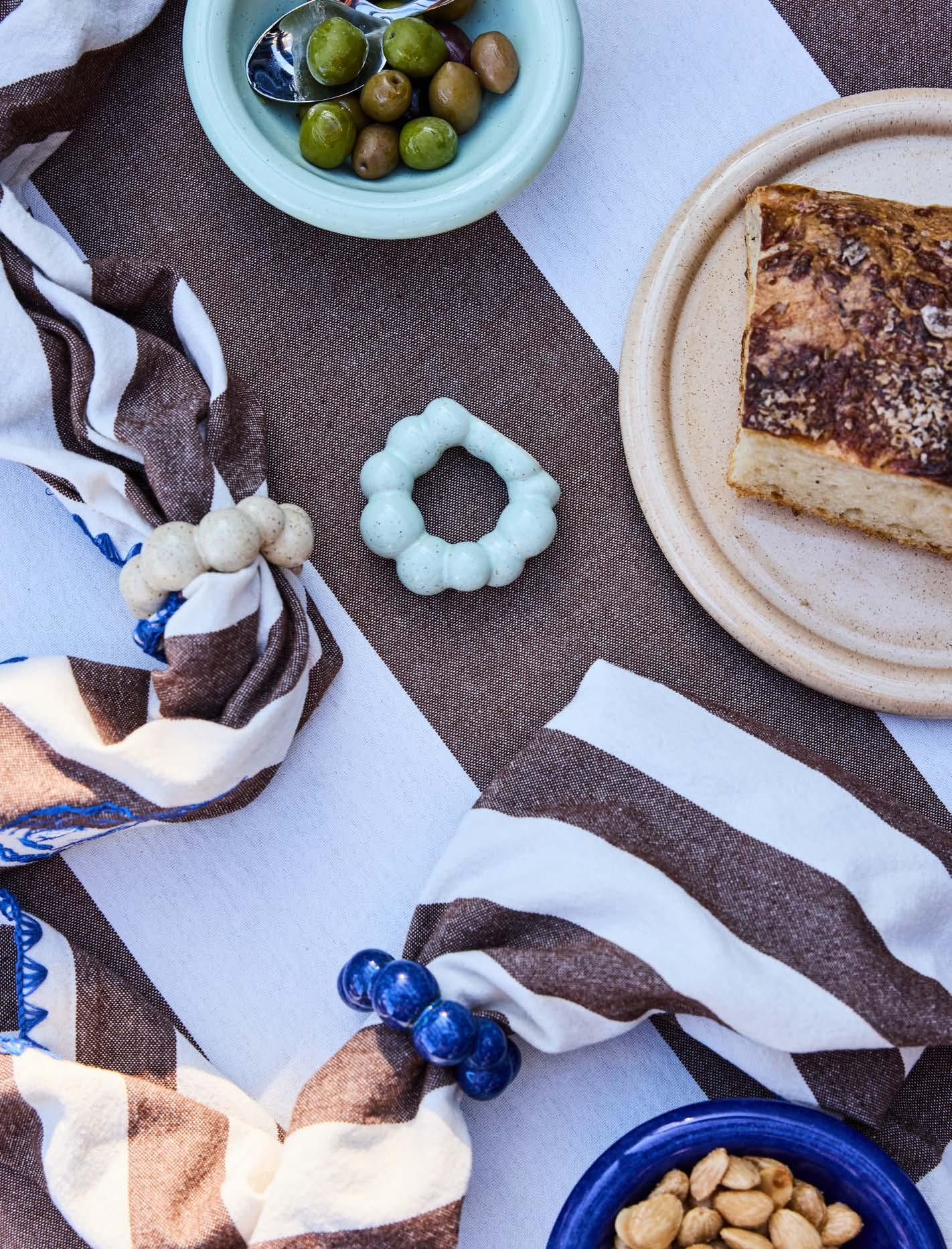 The Bubba series draws its inspiration from Southern Europe and long, inviting dinners where life is allowed to unfold slowly. Classic stripes are combined with playful embroidery such as shrimp and oyster motifs – a nod to the sea and a contrast to the elegant design. Hemstitch edges and carefully chosen colourways add personality, warmth and character to every table setting. The series includes tablecloths, napkins and kitchen towels, all produced from 70% recycled cotton and 30% recycled polyester. Bubba is designed to be mixed and matched, enhancing the sense of togetherness around the table. Each piece comes beautifully packaged with ribbon and bow – ready to be a cherished gift or your new favourite. Design Byon Studio.