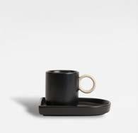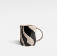 Uneven, round, twisted, organic, oversized and with crooked messy stripes. Swirl is the result when ceramics becomes handicraft in a modern way. The matt black-glazed surface meets the uncoloured raw one, and the contrast feels genuine. Swirl is chunky without being heavy. The perfect breakfast set if you ask us. Design Byon Studio.