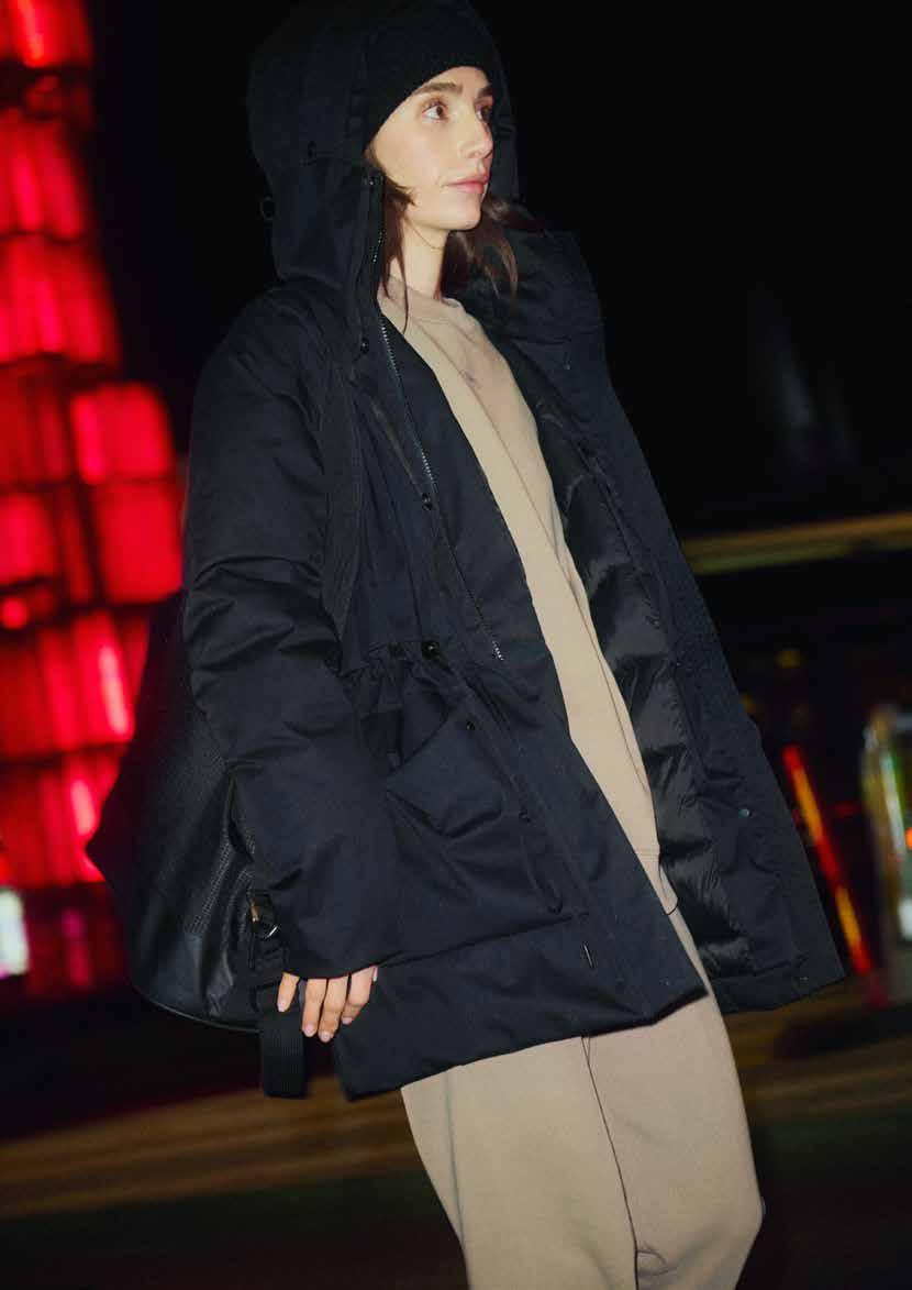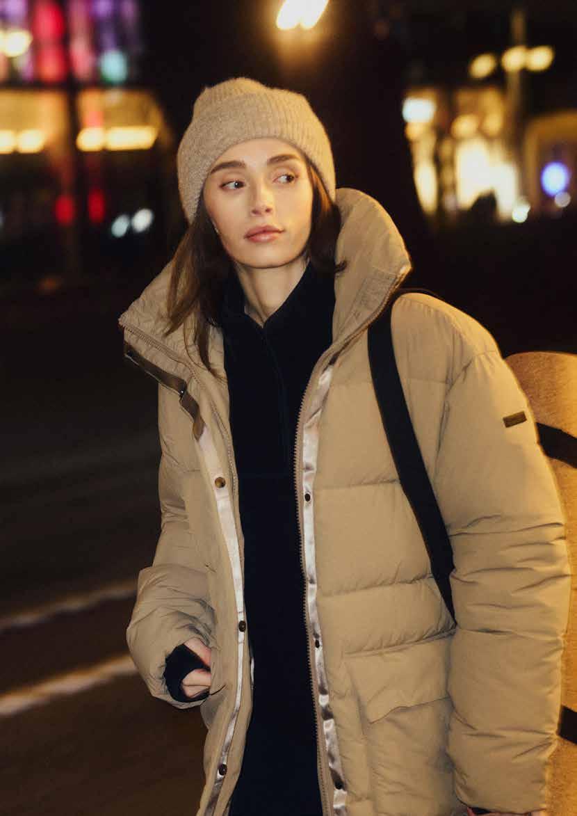 Denne stilfulde dynejakke er fremstillet til både fritid og formelle lejligheder og kombinerer funktionalitet med et minimalistisk udtryk. Det vandafvisende yderstof kombineret med tyk dunisolering giver enestående varme, når temperaturen falder. Derudover har jakken to rummelige håndvarmende lommer, en beskyttende hætte og en justerbar talje, der giver en skræddersyet pasform og en flatterende silhuet. Med et hoftelangt snit giver den ekstra dækning, mere varme og øget komfort på kølige vinterdage.