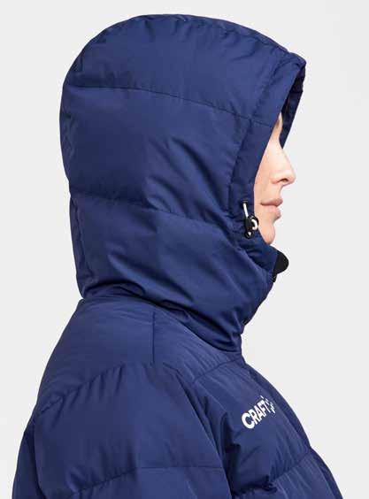 Denne stilfulde dynejakke er fremstillet til både fritid og formelle lejligheder og kombinerer funktionalitet med et minimalistisk udtryk. Det vandafvisende yderstof kombineret med tyk dunisolering giver enestående varme, når temperaturen falder. Derudover har jakken to rummelige håndvarmende lommer, aftagelig hætte og justerbar snøre i den nederste kant.