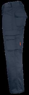 Easy-care polyester/cotton that holds colour and shape. Stretch panels at the back for extra flexibility. Spacious front pockets. Back pockets with flap. Leg pocket with extra compartment and flap with velcro closure. Ruler pocket. Trousers can be extended with 5 cm turn-up at ankle hem.