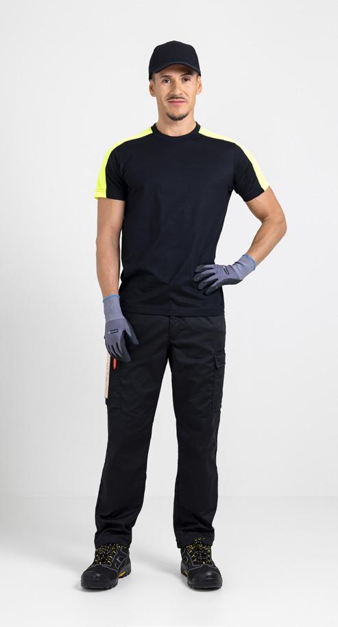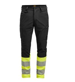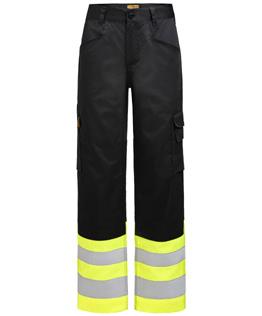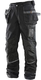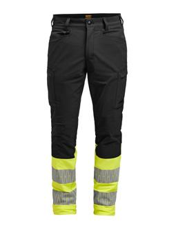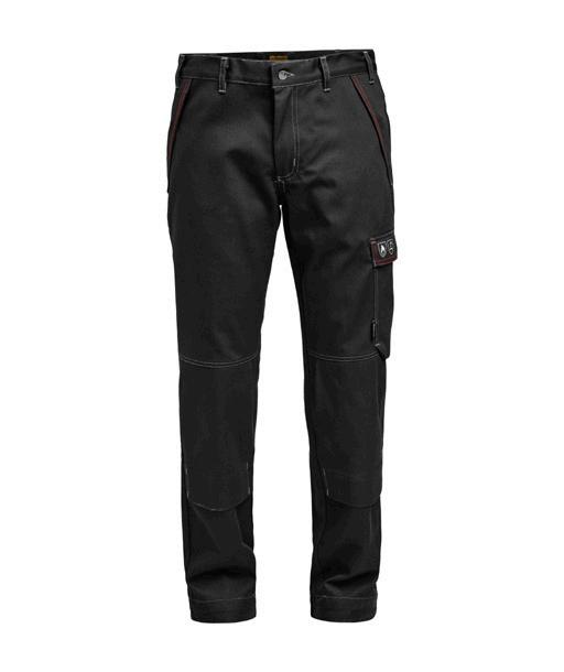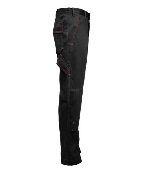 Easy-care polyester/cotton that holds colour and shape. Spacious front pockets. Back pockets with flap and velcro closure. Leg pocket with extra compartment and flap with velcro closure. Ruler pocket. C42-64 can be extended with 5 cm turn-up at ankle hem. F-sizes in colour black.