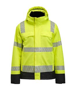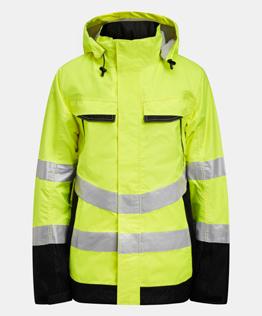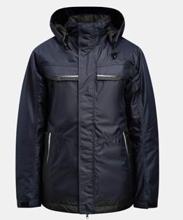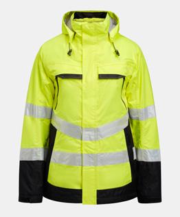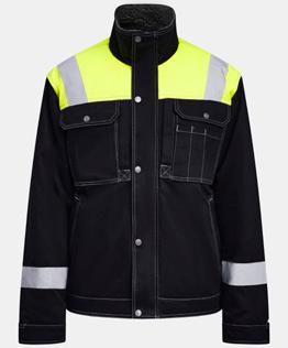 Quilt lined service jacket in easy-care polyester/cotton. Two chest pockets with velcro closure, D-ring on left chest pocket for ID card. Brushed soft polyester inside collar. Front pockets with zip. Two inside pockets, one large one for documents and one for a mobile phone. Adjustable cuffs and hem. Reflective strips at the front on the flap. Extended back with reflective piping.