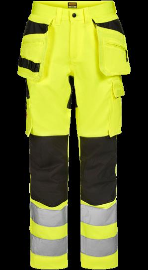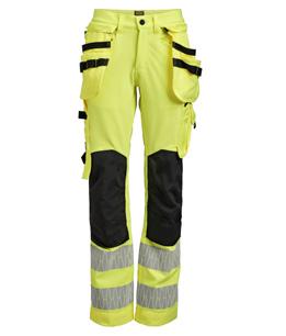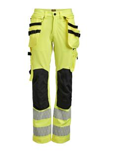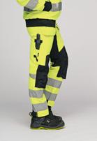 Comfortable 4-way stretch in durable Rip-stop material. Crotch gusset with reinforced stretch Cordura®. Spacious holster pockets with extra compartments and reinforced insides. These can be tucked into the front pockets. Silicone rubber shirt-grip in waistband. Extra belt loops in largest sizes. Welted back pockets. Hammer loop, ruler pocket with knife pocket. Leg pocket with covered zip, ID card pouch and phone pocket. Pre-bent knees and durable stretch Cordura® kneepad pockets with 3M™ reflective piping and can be fitted in two positions. Mesh at back of knee for ventilation. Reflective details for optimal visibility at knee level. Reinforcements in Cordura® and polyamide.