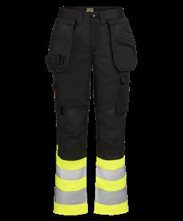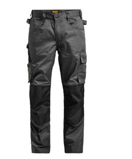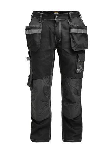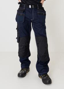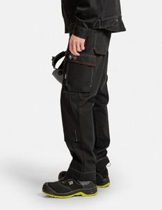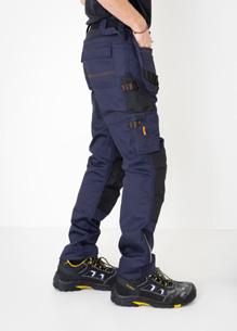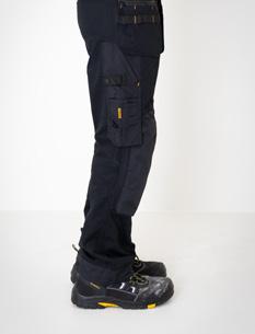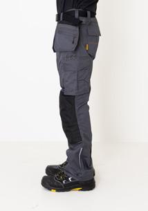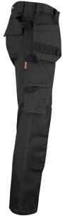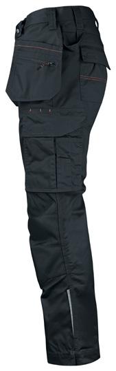 Easy-care polyester/cotton that holds colour and shape. Holster pockets with extra compartment and extra zip pocket. Back pockets with flap and velcro closure. Leg pocket with extra compartment and flap with velcro closure. Ruler pocket with knife pocket. Reinforced holster pockets and kneepad pockets. C42-64 can be extended with 5 cm turn-up at ankle hem.