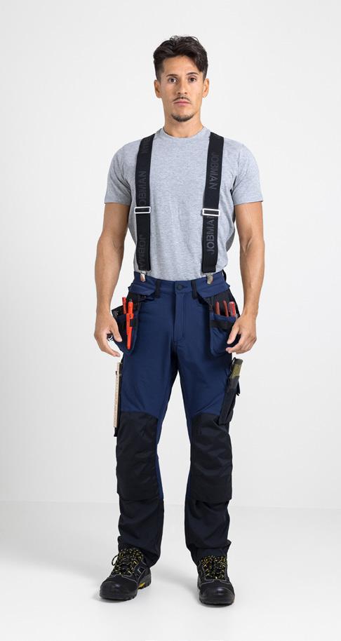 When you wear Jobman clothing, you are also wearing years of technical and functional development applied to every detail. Together, these important details create comfortable, easy to wear garments with a modern design and exceptional durability. These are clothes that are well designed using generations of solid expertise. Choosing high-quality, durable clothing is also an economically sound and sustainable decision – the basis for our quality ethos that runs through every garment. One example is our trousers for craft work, designed to meet the specific needs of craftspeople. Hanging back pockets, reinforced holster pockets and a zipped leg pocket ensure easy access to tools and keep your personal effects secure. The materials have been carefully chosen and combined in various areas of the trousers, cut and sewn to fit the body’s natural shape. The result is robust trousers that allow for free movement and ventilation where it matters.