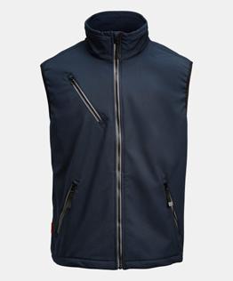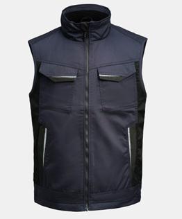 Quilt lined service vest in easy-care polyester/cotton. Two chest pockets with velcro closure, D-ring on left chest pocket for ID card. Brushed soft polyester inside collar. Front pockets with zip. Two inside pockets, one large one for documents and one for a mobile phone. Adjustable hem. Reflective strips at the front on the flap. Extended back with reflective piping.