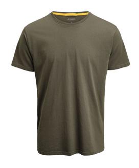 T-shirt in single jersey, combed, ringspun, preshrunked quality. Neckribb in 95% cotton, 5% elastane Decorative fabric label on right sleeve (only on color 7600 Olive green).