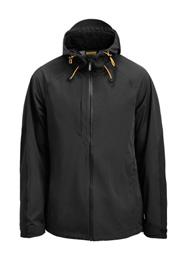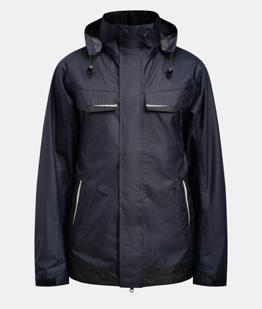 Waterproof shell jacket in 4-way stretch and taped seams. Reinforcement / contrasts on sleeves. Fixed hood, elastic drawstring around opening. Zipped frotnpockets and chest pocket on right side. Delrin zip at front with water repellent zip tape. Jacket is adjustable with elastic cord at bottom hem. Prebent sleeves, adjustable at bottom with velcro-straps. Water column: 10,000 mm. Breathability: 5000 g/m² 24h. Shell fabric has a fluorinefree finish. BIONIC-FINISH® DWR-treatment. Certified according Oeko-tex. EN343 certified.