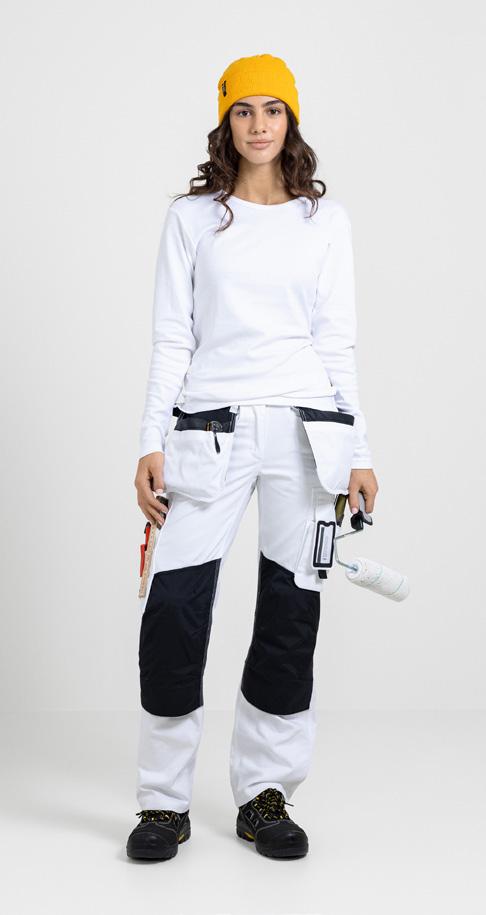 Easy-care polyester/cotton that holds colour and shape. Stretch panels at the back for extra flexibility. Spacious front pockets. Detachable holsterpockets with extra compartments and extra zip. Back pockets with flap. Leg pocket with extra compartment and flap with velcro closure. Ruler pocket with knife pocket. Reinforcement on kneepad pocket. Kneepads can be fitted in two positions for optimal fit. Trousers can be extended with 5 cm turn-up at ankle hem.