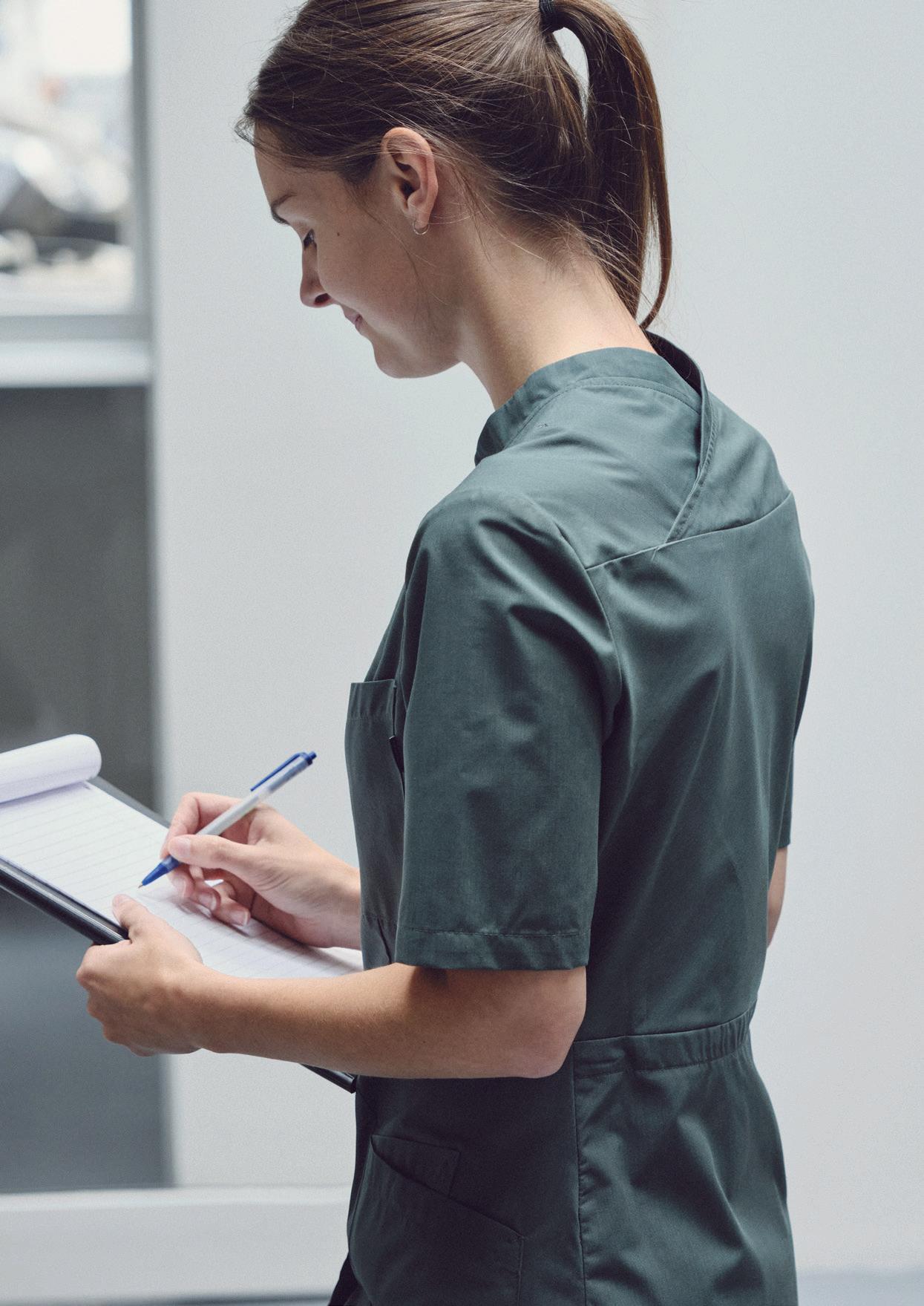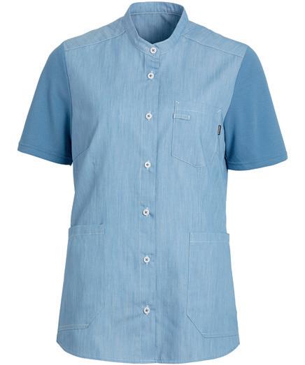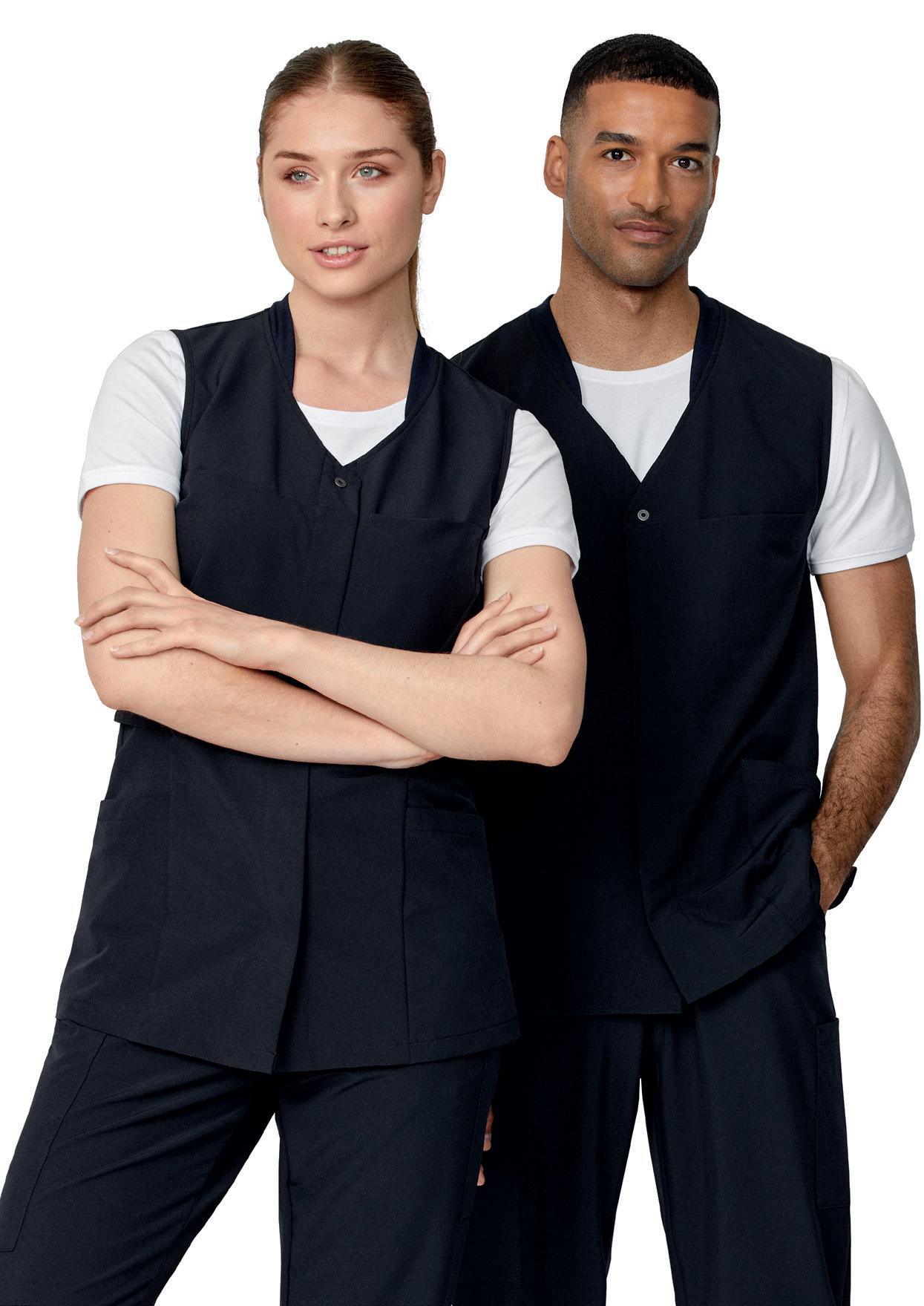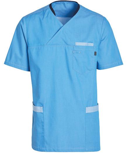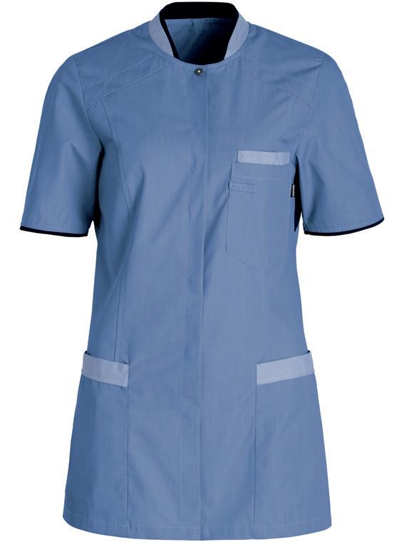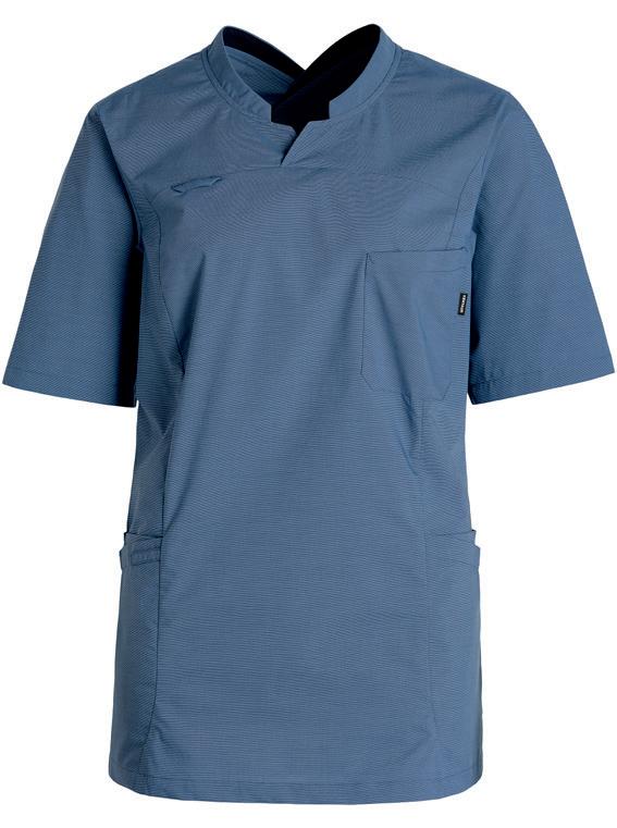 gør tøjet ekstra funktionelt. TENCEL™ Lyocell absorberer effektivt fugt, så brugeren forbliver tør, samtidig med at det hæmmer bakterievækst. Det lette materiale tørrer hurtigt efter vask, hvilket gør det særligt velegnet til et tempofyldt arbejde i sundhedssektoren.