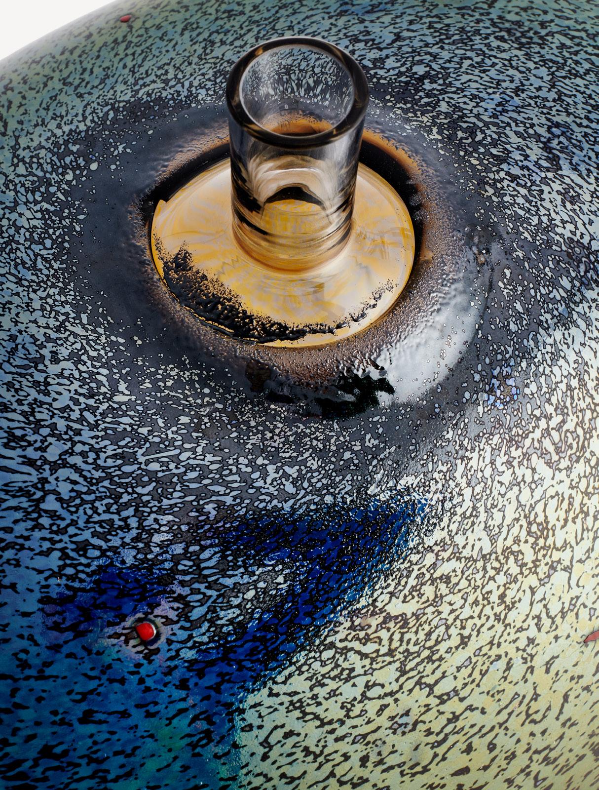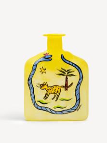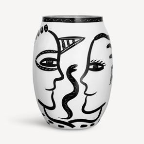 PET from Kosta Boda Artist Collection was Ulrica’s spontaneous response after Björn Kjelltoft painted her pattern on PET bottles and paper plates for an exhibition at the University of Arts, Crafts & Design (Konstfack). Ulrica took back control of her designs and used them to adorn a limited edition of PET bottles made of glass. The objects, which is marked with Ulrica Hydman Vallien’s seal, is mouth-blown in a mold at Kosta Glassworks, and then hand-painted, which gives each PET a unique expression.