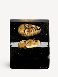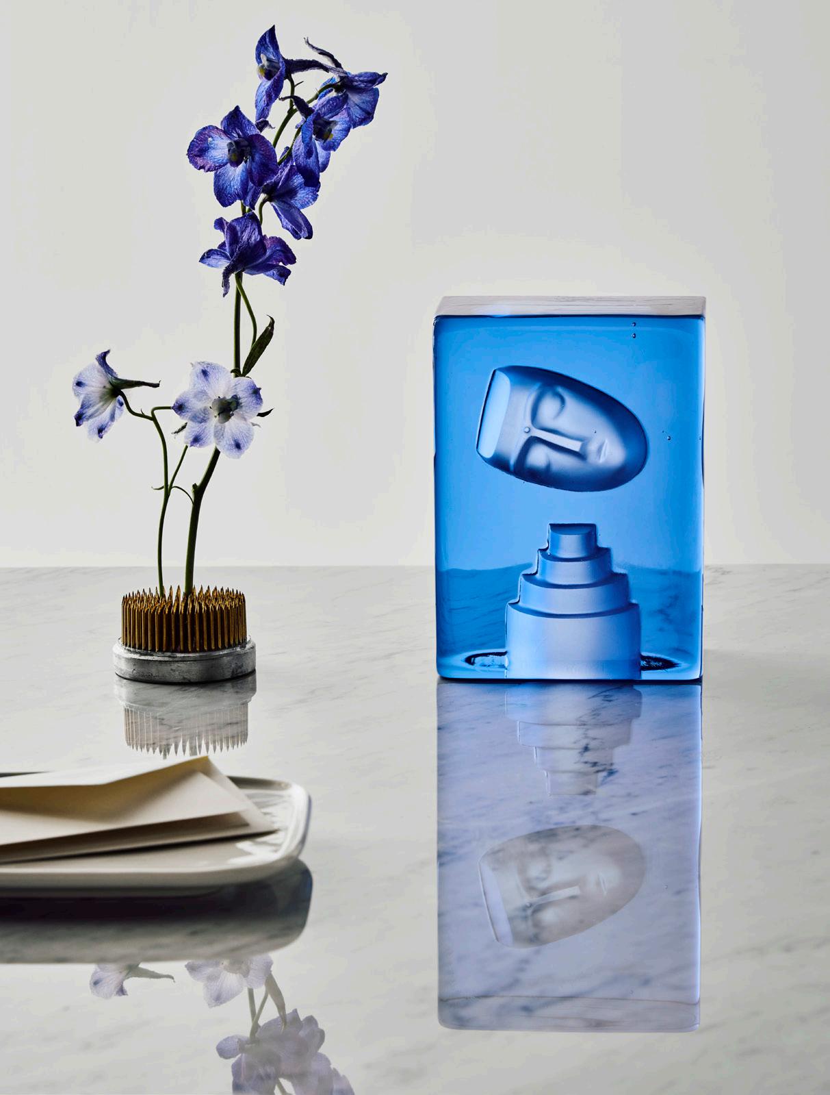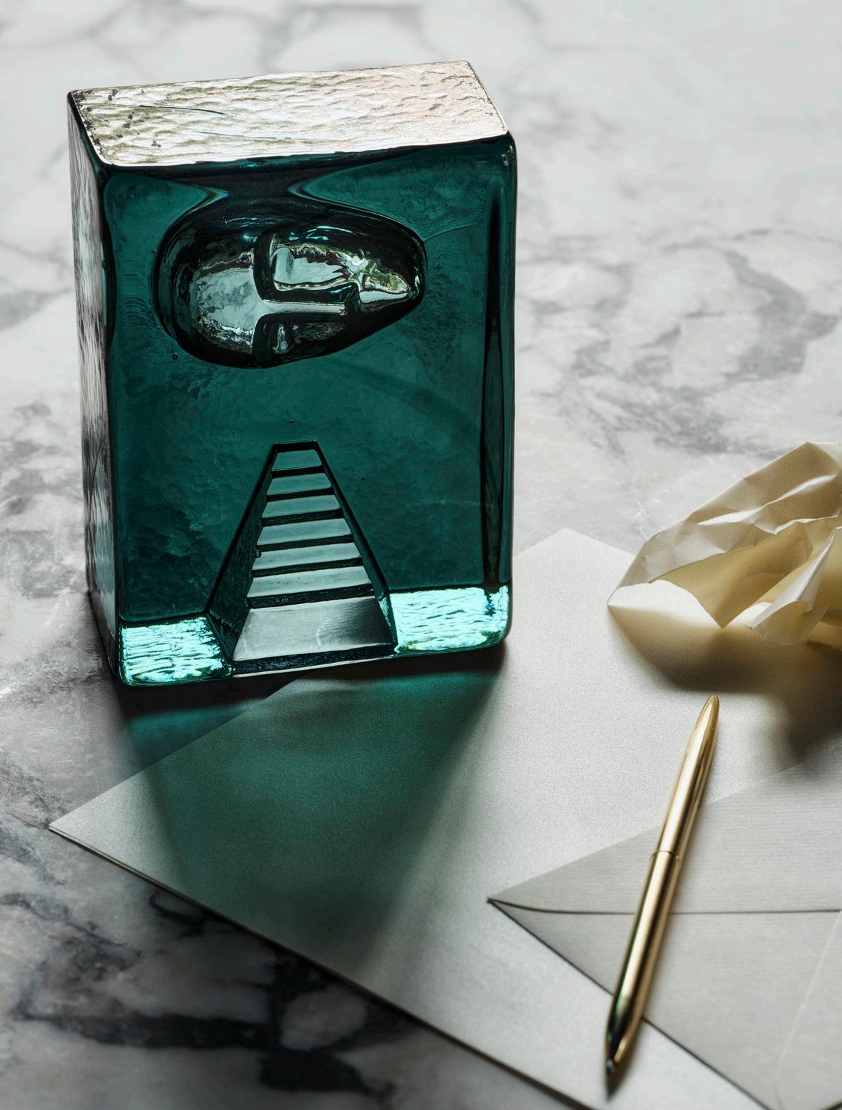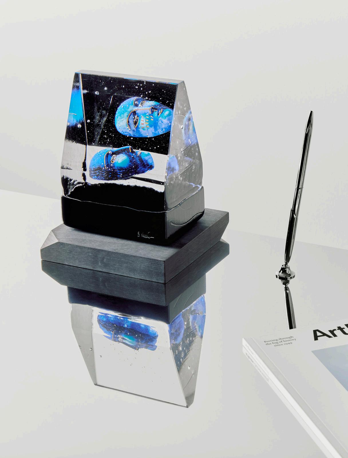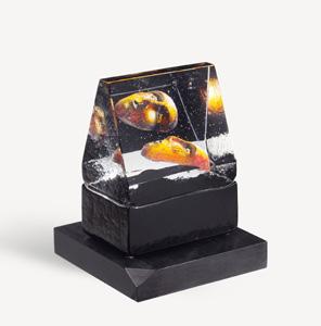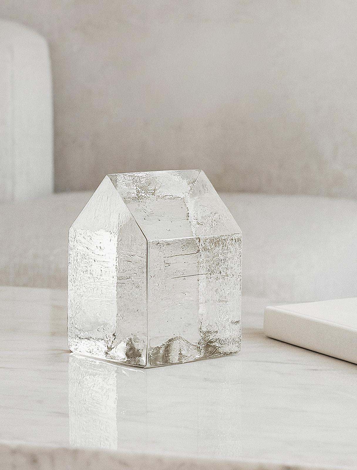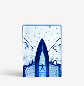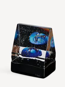 A solid cast cubic-shaped house that has become an established miniature universe in Bertil Vallien’s workshop. This collection is typical of the artist in many ways, notably representing his sense of space. These works of glass seem haunted by a floating sphere, a head – or simply by emptiness. In Bertil’s many years of exploring the inherent magic of glass, he always wants us to discover its natural form. So, here again, the focus is all on the glass itself. It is beautiful, playful, verging on the impossible!