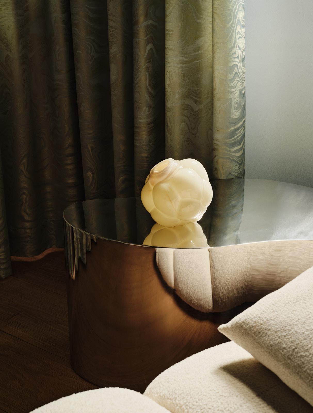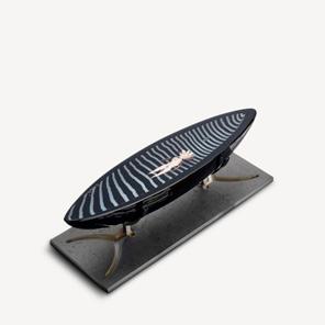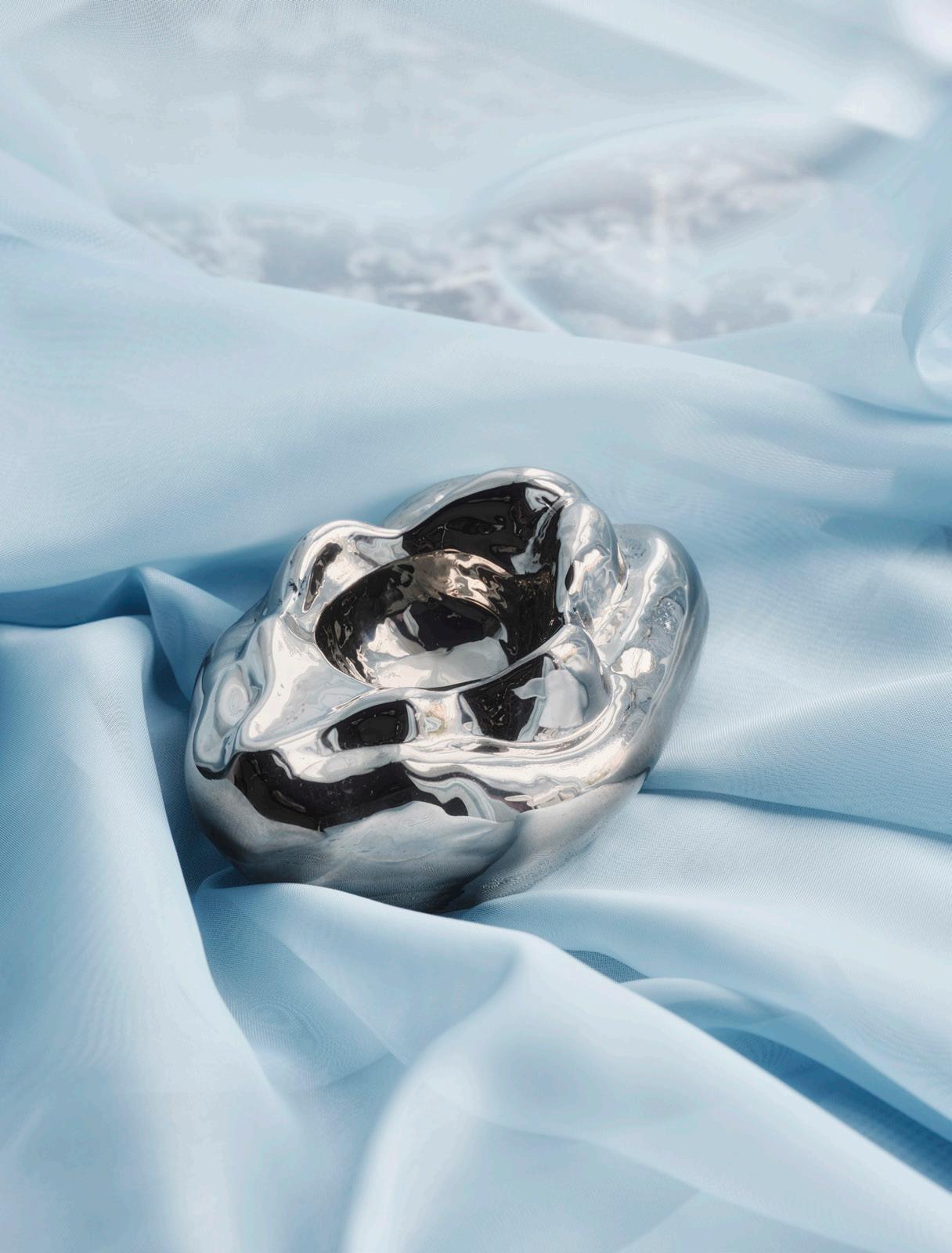 Åsa Jungnelius’ modern classic, Snippan, is now being presented in a smaller design that can also be used as a bowl. Since it was first created in 2003, Snippan has become a contemporary feminist symbol that has recurred in different forms and formats in Jungnelius’ art, for example, in countless table settings – a work that Jungnelius describes as a social act. The sculpture is included in Nationalmuseum’s collection as the “mothership” of the work Your hair is so pretty! – a sealed blown-glass object that challenges concepts such as gender, power, space and identity. In 2004, Snippan helped to establish a new word, which was included two years later in the Swedish Academy Dictionary. “I’m so glad that Snippan is now available in a smaller, more accessible design for interiors – it is a sculpture, but it is also a bowl, a carrier,” says Åsa Jungnelius. Snippan is cast in a graphite mold at the hot shop in Kosta and painted with liquid platinum.
