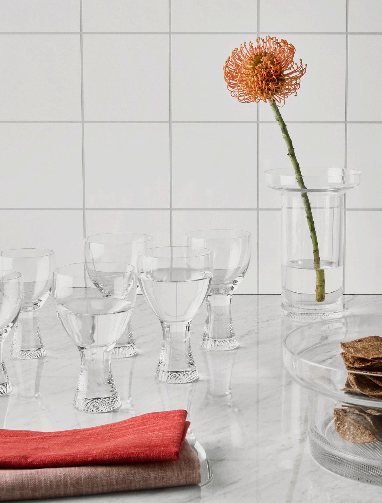 The ambition of Kosta Boda Collection is to capture the spirit of the times in the form of commercial lifestyle products. The range consists of well-designed and functional interior items. Complementary materials can be used, but always with the glass in focus. We find inspiration in the collective history of the glassworks and designers like Signe Persson-Melin and Erik Höglund, complemented by present-day influences. The collections encompass fashion, music and art, and aim to beautify and enhance modern everyday life – whether it concerns diningtable accessories, interior design or celebration.