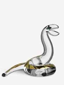 Vertical Journey is one of Bertil Vallien’s more detailed ships. This object in clear glass is cast, with a handpainted head, surrounded by different copper figures that are lowered into the glowing glass during the process. This ship from Kosta Boda Artist Collection comes mounted on a black wooden plinth.