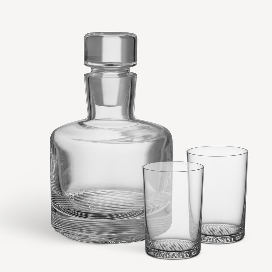 The Wave decanter by Kosta Boda has a design that marries clean lines, an attractive weight and a decorative ripple pattern across the base into a whole that goes great with any collection of glasses. It sits particularly well with Kosta Boda’s popular series Limelight by Göran Wärff.