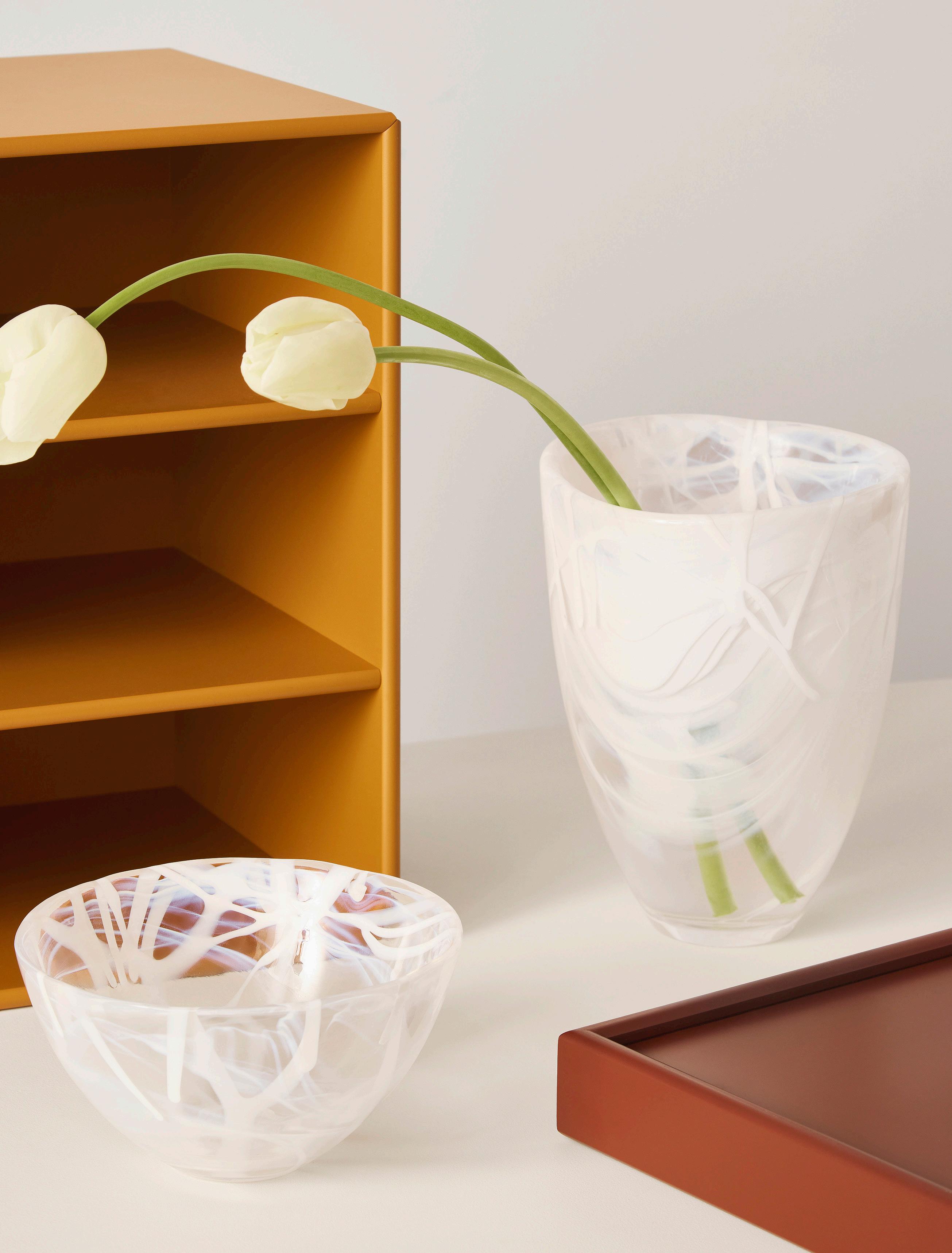 The ambition of Kosta Boda Collection is to capture the spirit of the times in the form of commercial lifestyle products. The range consists of well-designed and functional interior items. Complementary materials can be used, but always with the glass in focus. We find inspiration in the collective history of the glassworks and designers like Signe Persson-Melin and Erik Höglund, complemented by present-day influences. The collections encompass fashion, music and art, and aim to beautify and enhance modern everyday life – whether it concerns dining-table accessories, interior design or celebration.