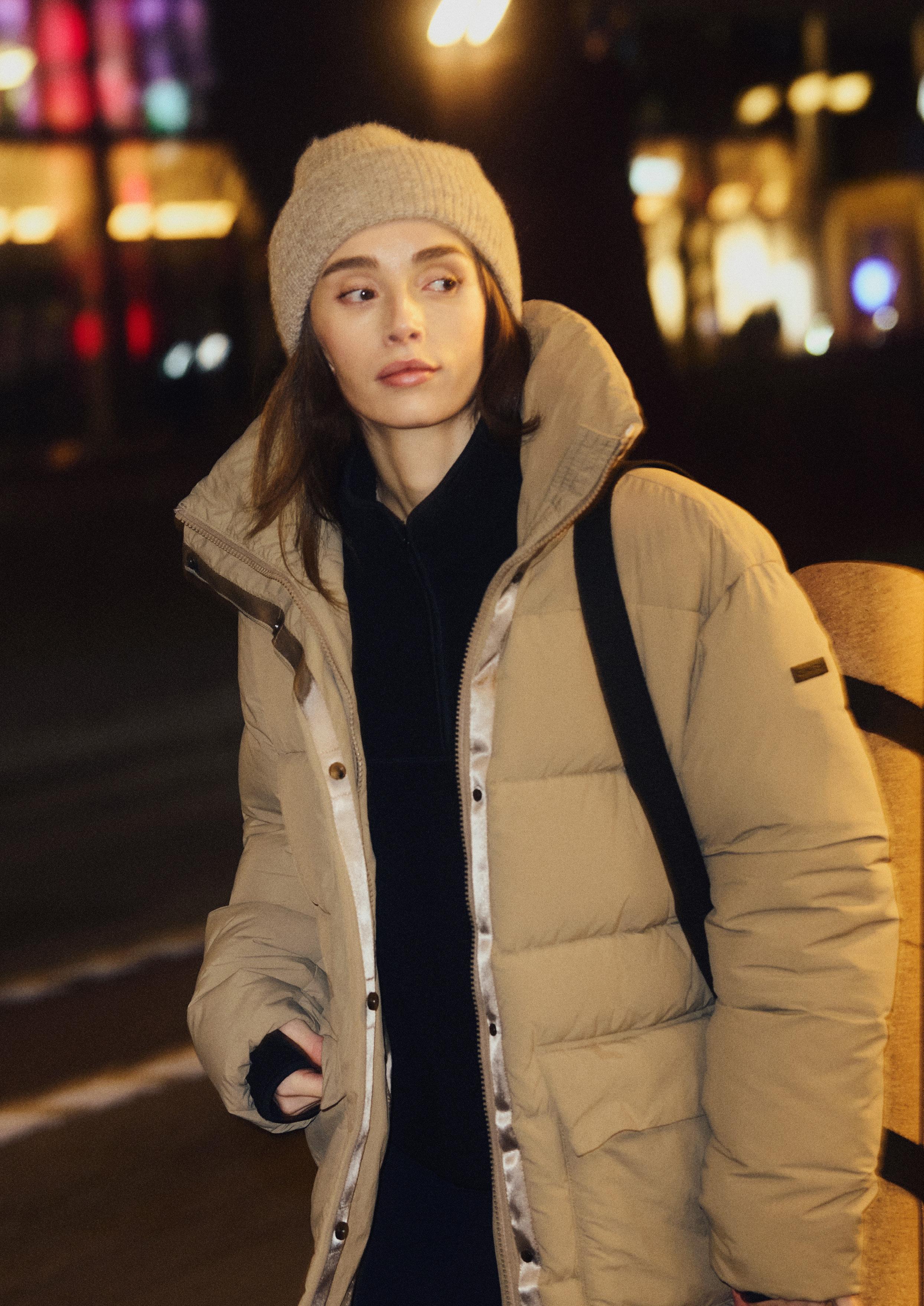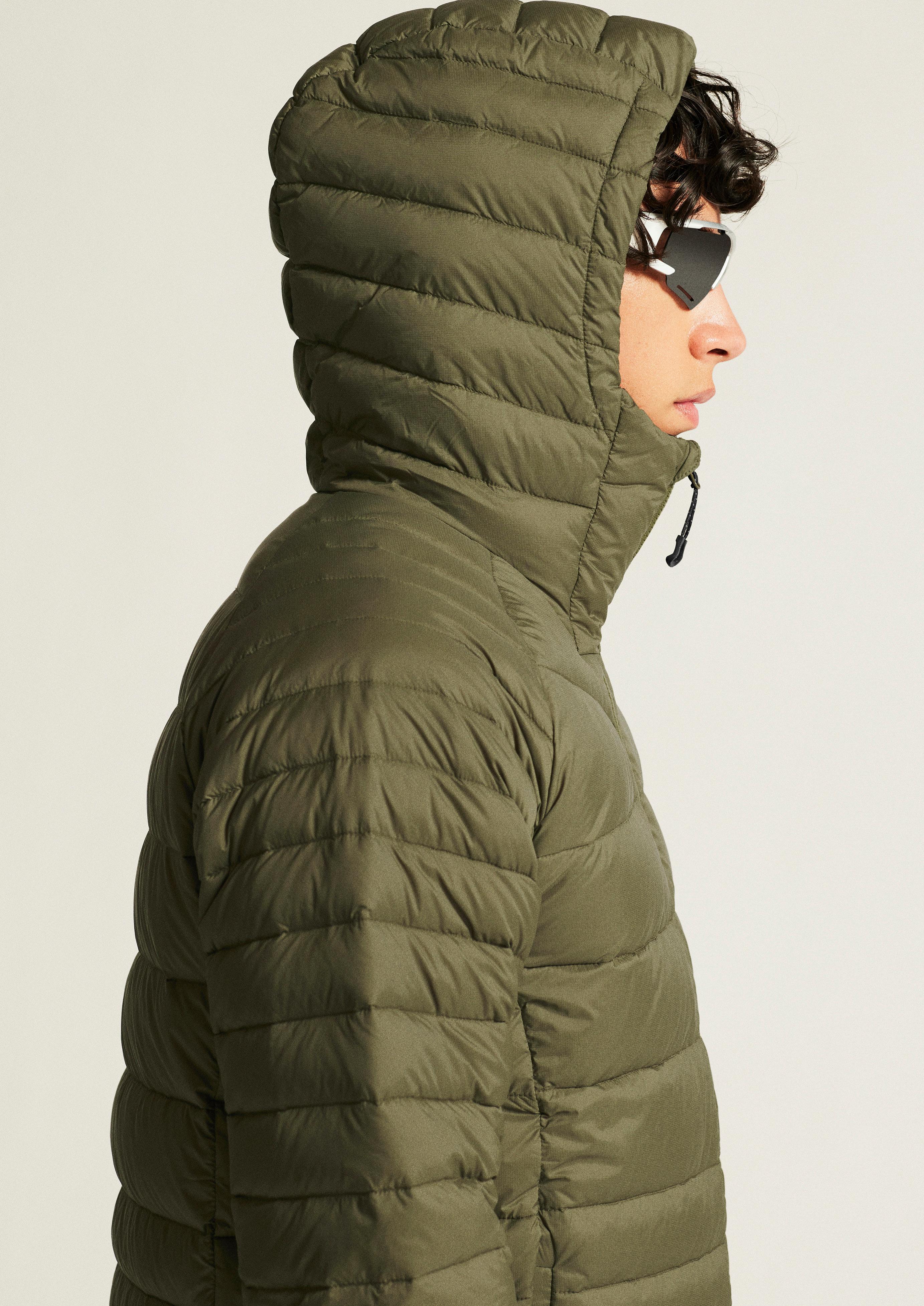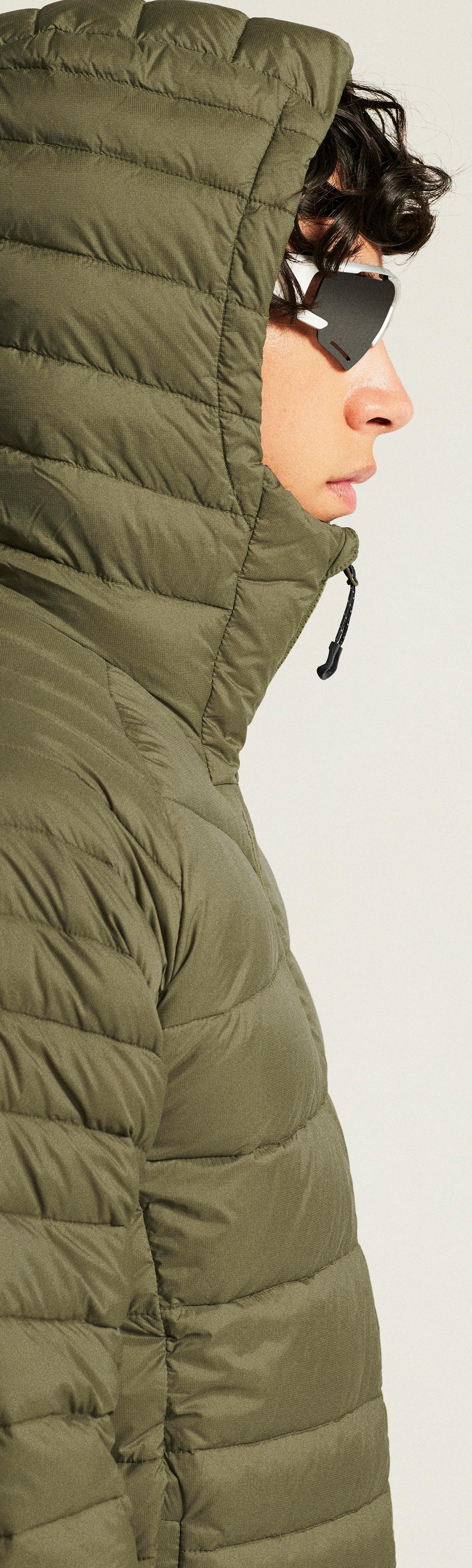MATERIALE: Øverste del: 100% recycled polyamide. Nederste del: 94% recycled polyester, 6% elastan. Polstring: 10% fjer, 90% dun.