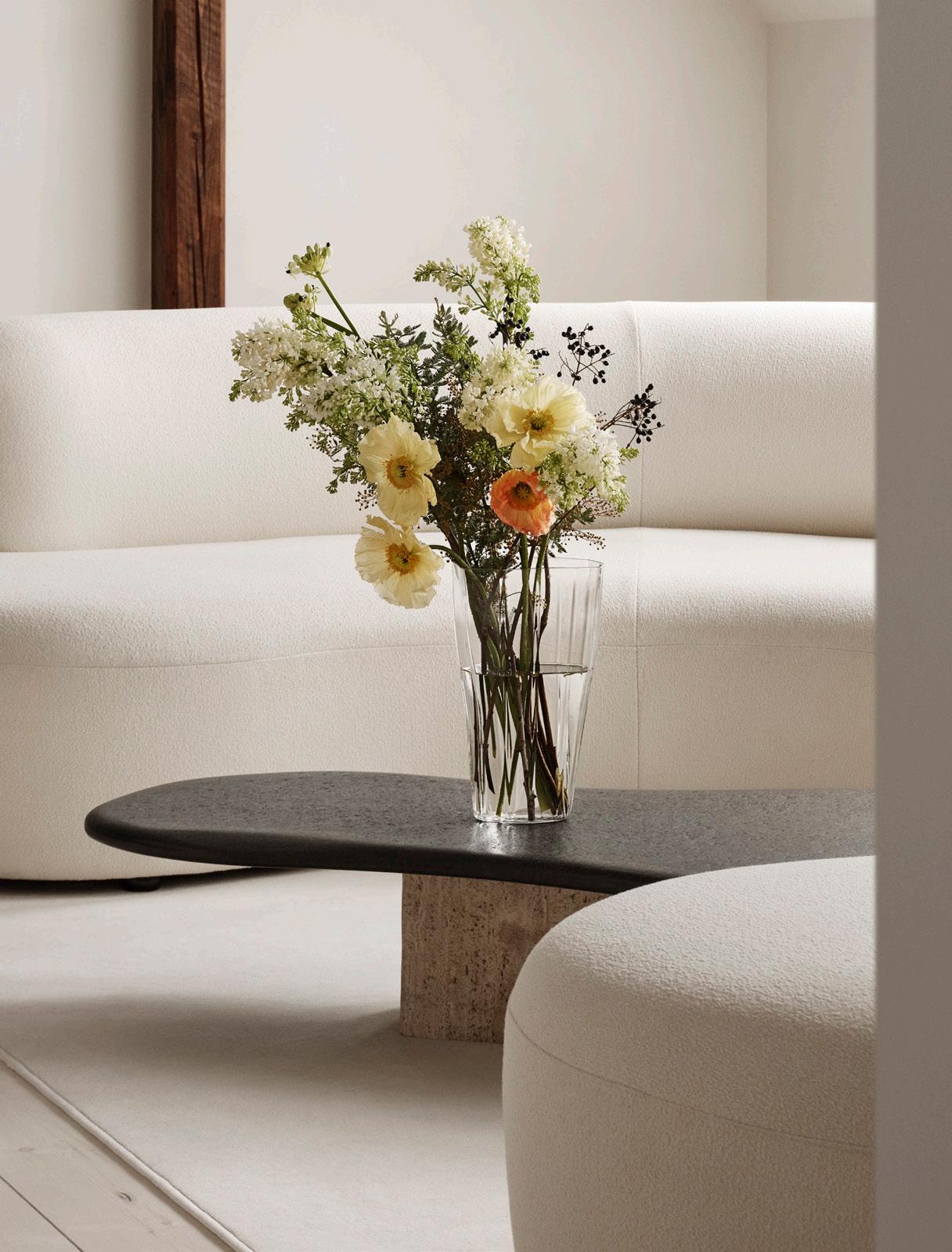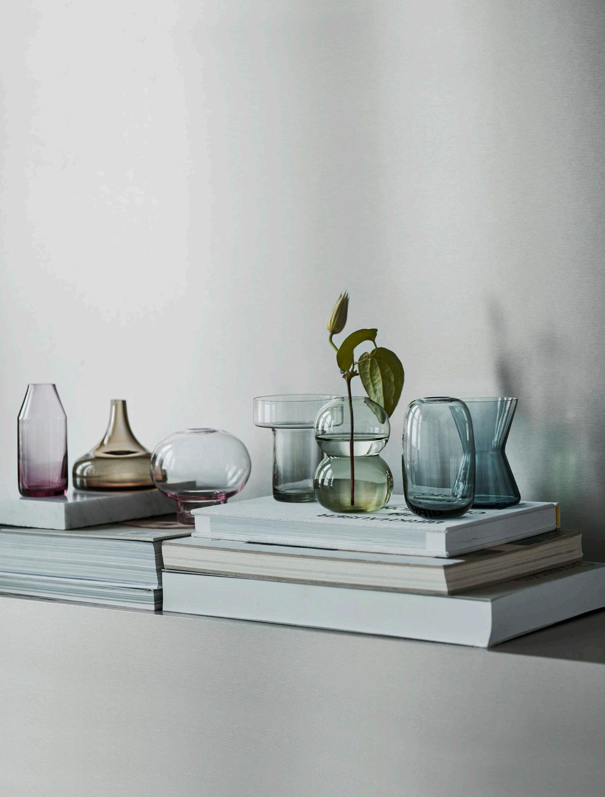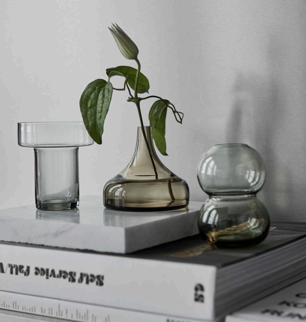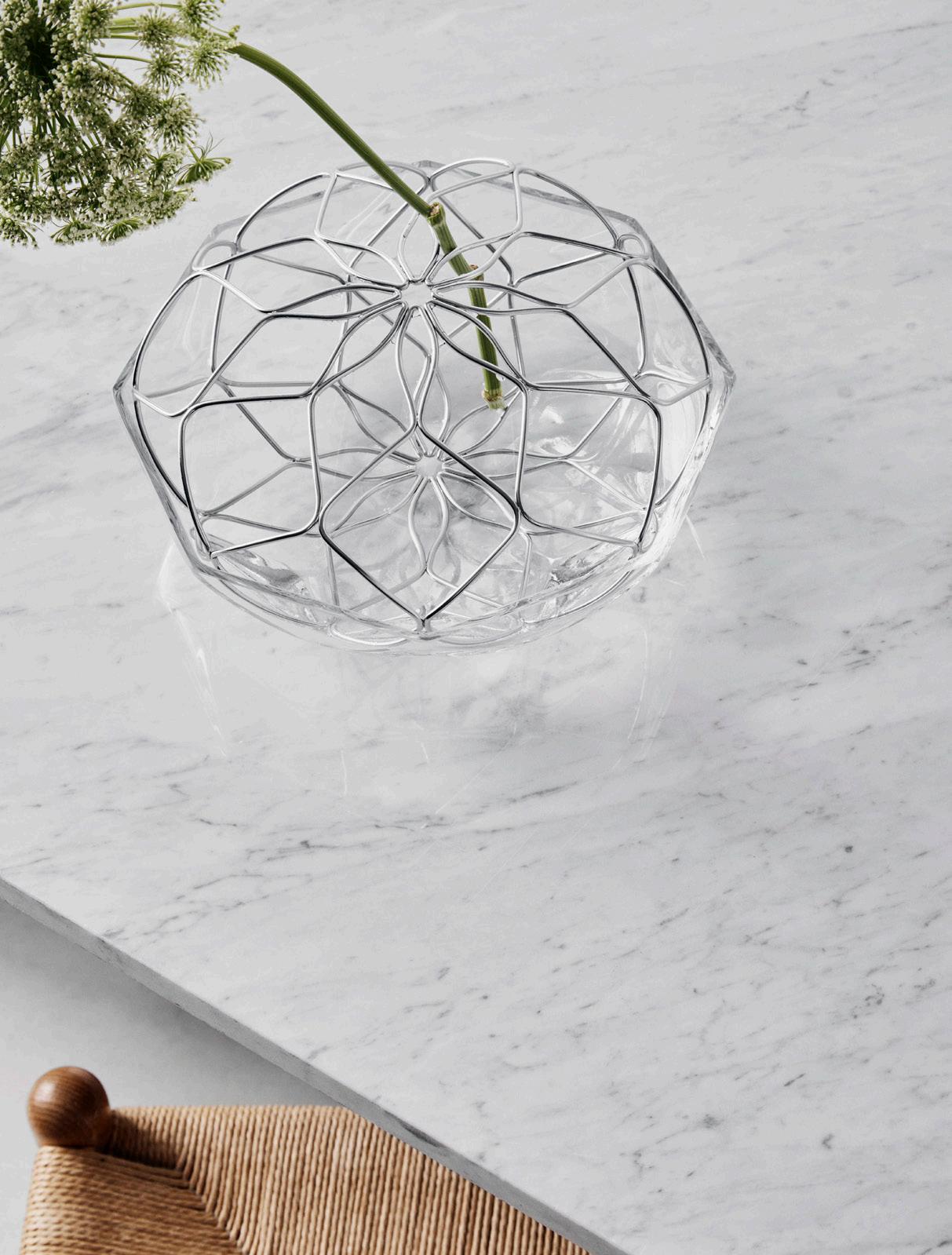 Bloom was born from a question: Can a vase be equally beautiful with or without flowers? Designer Lisa Hilland looked to geometry in nature for a shape that could combine simplicty with detail. The glass moves with suppleness toward the removable metal top. Both pieces reflect light, but in entirely different ways. The grid of the top also serves a purpose, if you want to place flowers inside Bloom: it allows you to shape your arrangements. You can even place a single plant in it, for an understated Scandinavian look. The series was launched in 2018.