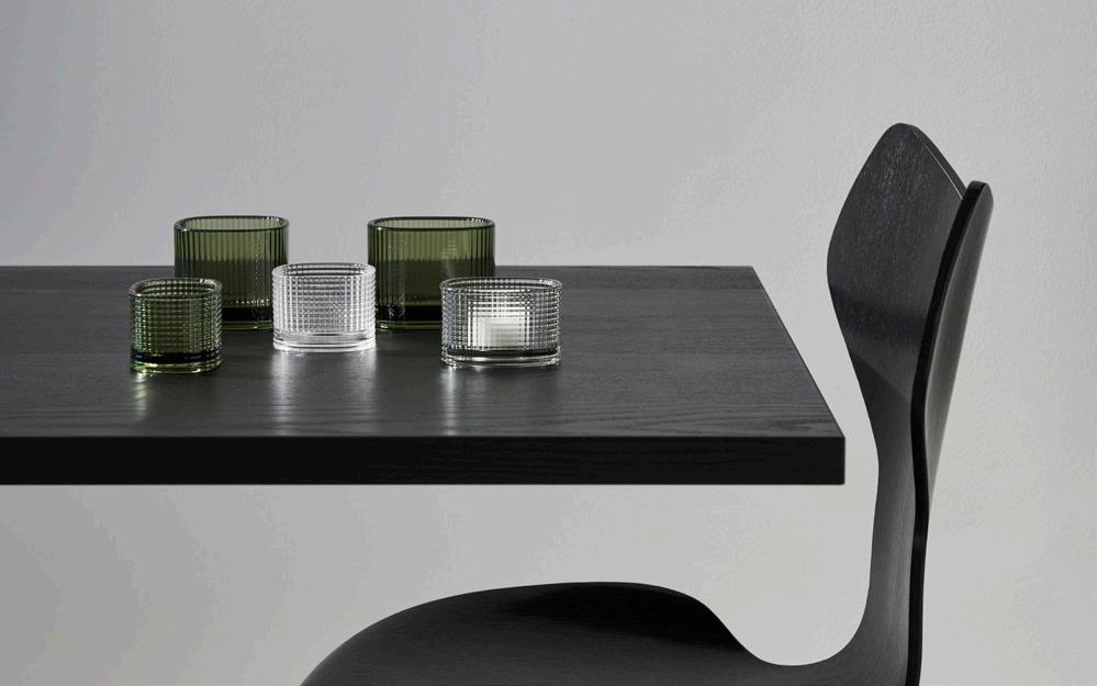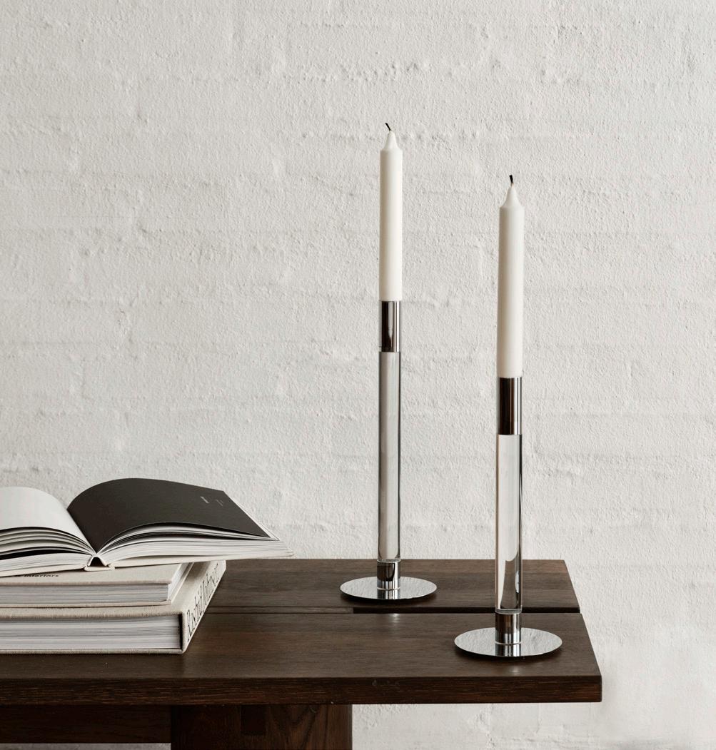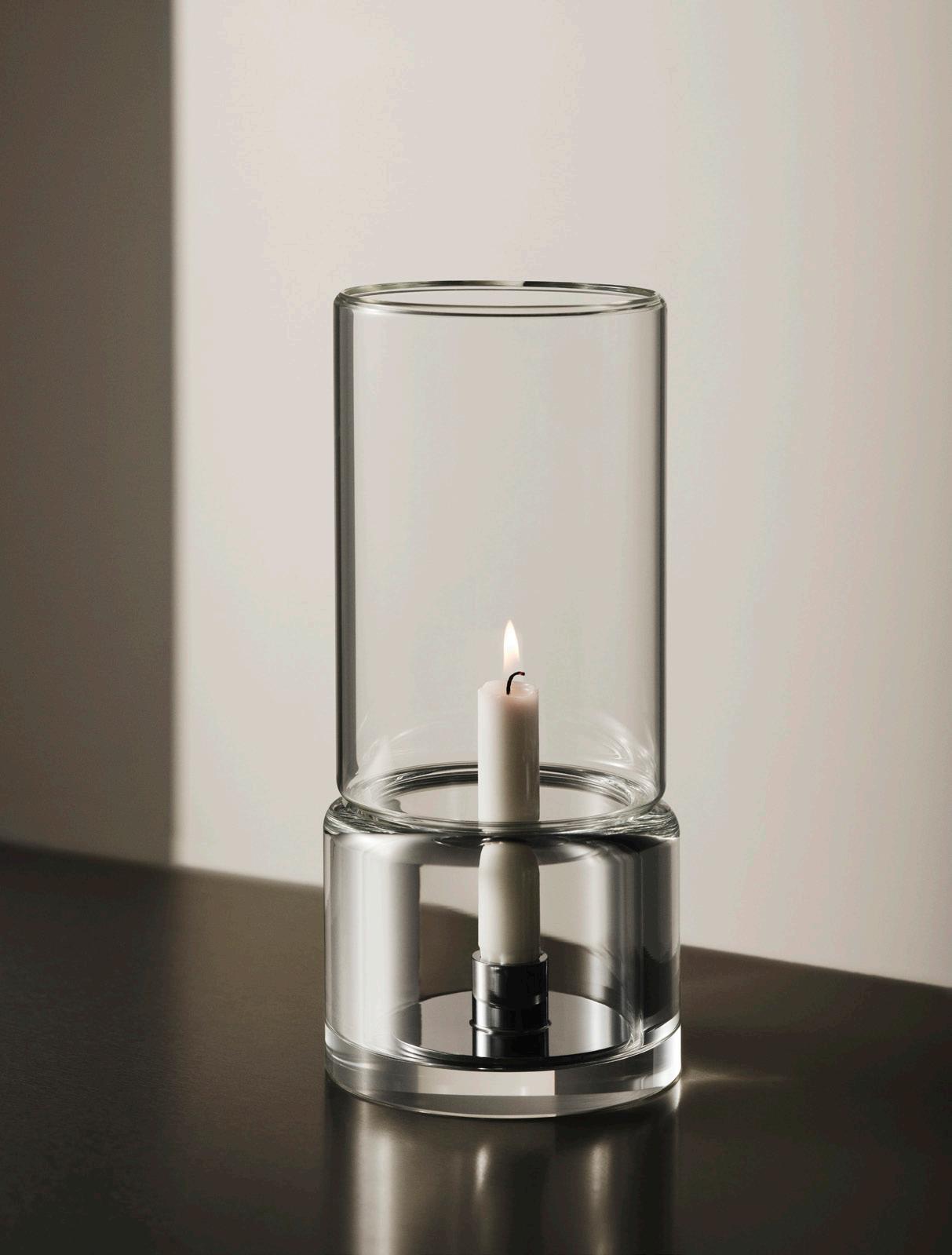 Tou, designed by Claesson Koivisto Rune and Orrefors, shows how an established function can take on a new form. Inspired by the classic hurricane lamp, the designers have divided Tou into two components: a foundation in thicker glass, and a tall, thin-glass cylinder placed inside. The different layers and thicknesses reflect the room and the candle flame in a way that makes the eye linger. Set the table with Tou both outdoors and indoors. The candles are easy to light when you lift off the top. And with the tall glass in place, the flame burns quietly, even in an evening breeze.
